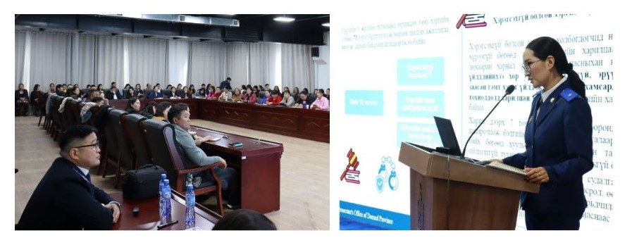 Мөн аймгийн Цагдаагийн газар, Боловсролын газар, Политехникийн коллеж, Хүүхэд, гэр бүлийн хөгжил, хамгааллын газар, аймгийн төв, сумдын сургуулийн өмнөх боловсролын болон ерөнхий боловсролын сургуулийн удирдлага, нийгмийн ажилтан, албан хаагчидтай хүчиндэх, бага насны хүүхэд хохирсон гэмт хэргээс урьдчилан сэргийлэхэд анхаарах асуудлаар уулзалт, хэлэлцүүлэг зохион байгуулсан.