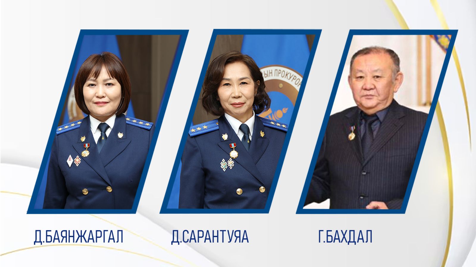 Монгол Улсын хөгжил дэвшил, хууль дээдлэх ёсыг сахиулах, шударга ёсыг бэхжүүлэх үйл хэрэгт үнэтэй хувь нэмэр оруулж, хүний эрх, эрх чөлөөг хүндэтгэн хамгаалах албан үүргээ нэр төртэй биелүүлсэн прокурор Д.Баянжаргал, Д.Сарантуяа, ахмад прокурор Г.Бахдал нар гавьяат хуульч цолоор шагнагдав.