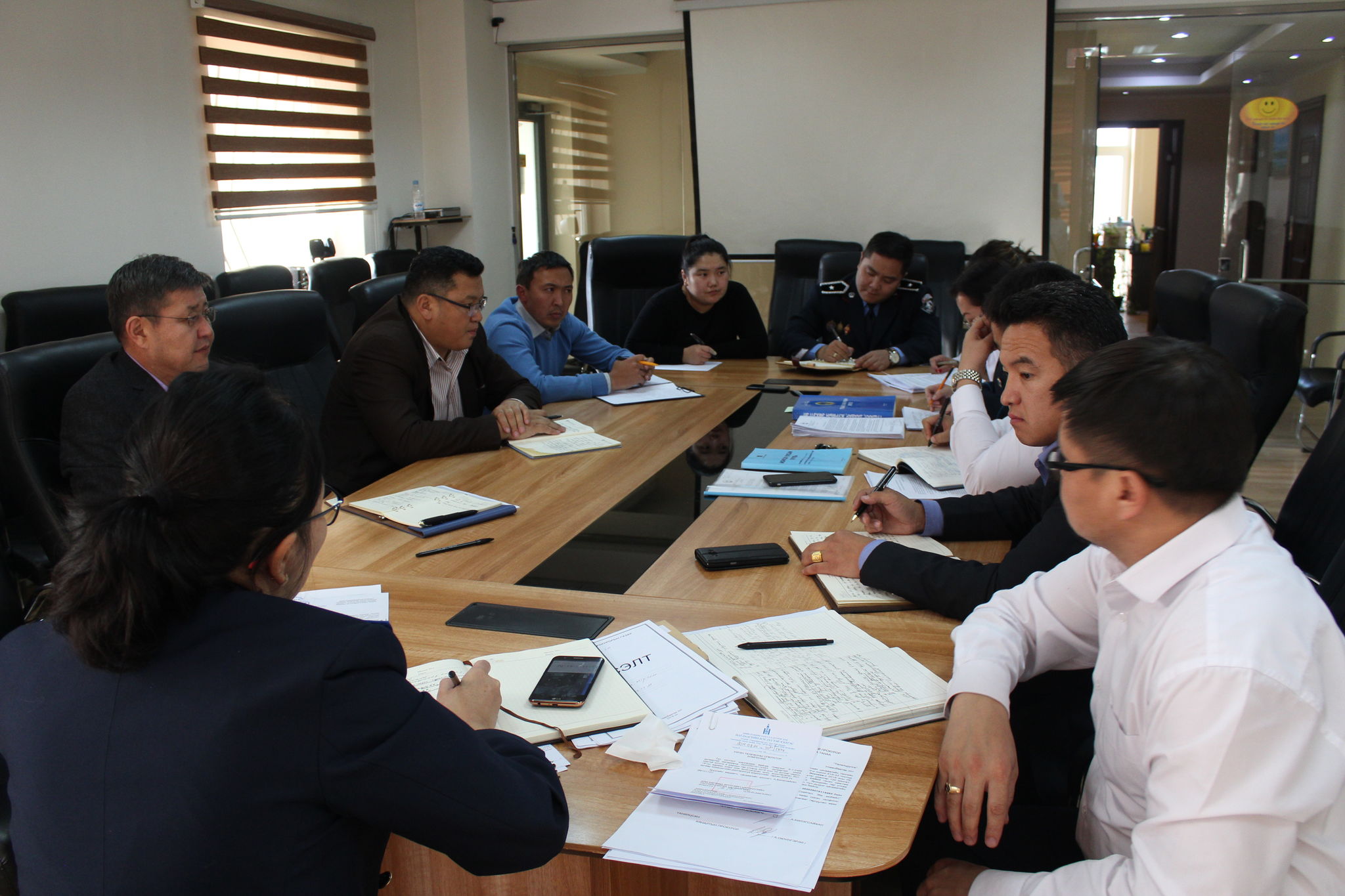 Хан-Уул дүүргийн прокурорын газраас Улсын Ерөнхий прокурорын 2017 оны А/80 дугаар тушаалаар батлагдсан “Эрүүгийн хэрэгт хөрөнгө, орлого, барьцааны мөнгө, эд мөрийн баримт, эд зүйлийг хураан авах, бэхжүүлэх, хүлээн авах, хадгалах, хамгаалах, шилжүүлэх” журмын хэрэгжилтийг шалгасан дүнг 2018 оны 09 дүгээр сарын 28-ны өдөр харьяа Цагдаагийн хэлтсүүдийн удирдах албан тушаалтнуудыг оролцуулан, хамтарсан хурлаар хэлэлцжээ. Хурлаар дээрх журмын хэрэгжилтийн байдал, илэрсэн зөрчлийг арилгуулах болон цаашид анхаарах асуудлын талаар хэлэлцэж, хамтарсан ажлын хэсэг байгуулан Цагдаагийн хэлтсүүд болон Прокурорын газарт хадгалагдаж буй эд зүйл, эд мөрийн баримтуудыг нэг бүрчлэн тулгалт хийн шийдвэрлэх, шалгалтын мөрөөр Цагдаагийн хэлтсүүдэд прокурорын шаардлага хүргүүлэхээр шийдвэрлэсэн байна. Дүүргийн прокурорын газрын ерөнхий прокуророос улиралд нэгээс доошгүй удаа хуралдаж, эд мөрийн баримтыг прокурорын тогтоолд заасны дагуу тогтоосон хугацаанд шийдвэрлэж байх, дээрх журмыг нэг мөр хэрэгжүүлэх талаар харьяа албан хаагчдад дотооддоо сургалт явуулж, холбогдох бүртгэлийг шаардлагын дагуу бүртгүүлэх ажлыг зохион байгуулах үүргийг ажлын хэсэгт өгчээ. ХАН-УУЛ ДҮҮРГИЙН ПРОКУРОРЫН ГАЗРААС МЭДЭЭЛЭВ.