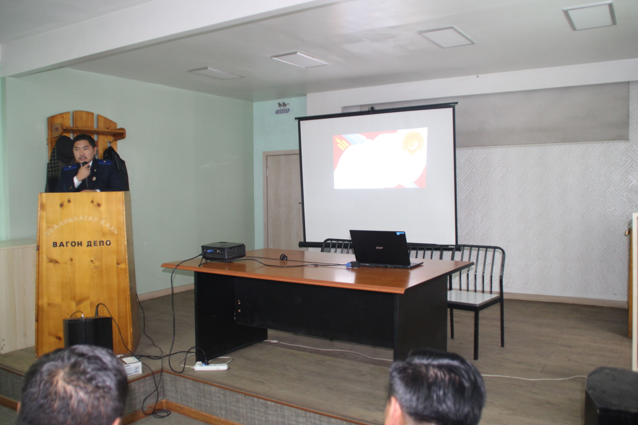 Тээврийн прокурорын газраас Тээврийн Цагдаагийн албаны Төмөр зам дахь Цагдаагийн газартай хамтран Зорчигчийн вагон депогийн ажилтнуудад шинээр батлагдсан Эрүүгийн хууль, Зөрчлийн тухай хууль болон бусад холбогдох хуулиудыг сурталчлах,гэмт хэрэг, зөрчлөөс урьдчилан сэргийлэх чиглэлээр хууль эрх зүйн зөвлөгөө өгөх, прокурор, цагдаа-төмөр замчдын хамтын ажиллагааг сайжруулж, гэмт хэргээс урьдчилан сэргийлэх ажилд иргэдийн оролцоог нэмэгдүүлэх зорилгоор 2018 оны 09 дүгээр сарын 28-ны өдрийн 09:00-11:30 цагийн хооронд Улаанбаатар төмөр замын зорчигчийн вагон депогийн хурлын танхимд “ Нээлттэй хаалганы өдөр”-ийг зохион байгуулж ажиллалаа. Арга хэмжээг Тээврийн прокурорын газрын Ерөнхий прокурорын орлогч, хууль цаазын итгэмжит зөвлөх Д.Сарантуяа нээж , Зөрчлийн болон Эрүүгийн хуульд орсон өөрчлөлт түүний хэрэгжилтийн талаар танилцуулга хийсэн ба Төмөр зам дахь Цагдаагийн газрын Мөрдөн байцаах тасгийн дарга, цагдаагийн дэд хурандаа А.Лхагвадорж, Хэрэг бүртгэх тасгийн дарга, цагдаагийн хошууч Б.Уртнасан, Нийтийн хэв журам хамгаалах тасгийн дарга, цагдаагийн дэд хурандаа Б.Гүнчин-Иш нар болон тус газрын нийт прокурор ажилтнууд оролцсон байна. Цагдаагийн ерөнхий газрын Урьдчилан сэргийлэх хэлтсийн ахлах мэргэжилтэн, цагдаагийн дэд хурандаа Д.Бүрэнбаатар иргэдийг цахим гэмт хэргийн хохирогч болохоос урьдчилан сэргийлэх, цагдаагийн байгууллагаас гэмт хэрэг, зөрчлөөс урьдчилан сэргийлэх чиглэлээр хийж хэрэгжүүлж байгаа ажлын талаар 20 минутын мэдээлэл хийсэн байна. Төмөр зам дахь цагдаагийн газрын Захиргааны удирдлагын тасаг, Эрүүгийн цагдаагийн тасаг, Хэрэг бүртгэх, Мөрдөн байцаах тасаг, Нийтийн хэв журам хамгаалах тасгууд нь өөр өөрсдийн онцлогийг харуулсан хулдаасан хэвлэл, Цагдаагийн албаны тухай хууль, Гэмт хэргээс урьдчилан сэргийлэх ажилд иргэдийн оролцоо зэрэг 5 төрлийн танилцуулга, зурагт үзүүлэн / эрэгтэй, эмэгтэй цагдаа хувцастай / байрлуулсан Тээврийн прокурорын газрын хяналтын прокурор С.Цэрэндорж шинэчлэн батлагдсан хууль тогтоомж, төмөр замын объектод гарч байгаа гэмт хэрэг, зөрчил тэдгээрийн шалтгаан нөхцөлийн талаар мэдээлэл хийв. Тээврийн прокурорын газрын ахлах прокурор Л.Батгэрэл, Ц.Дагвадорж хяналтын прокурор О.Баасанхүү, С.Цэрэндорж, Ж.Энхжаргал, н.Уранбайгаль, Б.Дэлгэрмаа, Төмөр зам дахь цагдаагийн газрын Эрүүгийн цагдаагийн тасгийн ахлах мөрдөгч, цагдаагийн хошууч Э.Одбаяр, эдийн засгийн мөрдөгч, цагдаагийн ахмад Г.Бишсүрэн, мөрдөн байцаах тасгийн ахлах мөрдөгч, цагдаагийн хошууч Г.Сайнжаргал, хэрэг бүртгэх тасгийн ахлах мөрдөгч, цагдаагийн хошууч Х.Баяржаргал, нийтийн хэв журам хамгаалах тасгийн хэв журмын ажил хариуцсан байцаагч, цагдаагийн ахлах дэслэгч А.Батсайхан нар нь хуулийн шинэчилсэн найруулгын талаар иргэдэд хууль эрх зүйн зөвлөгөө өгч, хэрэг зөрчлөөс урьдчилан сэргийлэх 20 төрлийн 540 ширхэг зөвлөмж, гарын авлага материалыг тараан ажилласан байна. Арга хэмжээнд Улаанбаатар төмөр замын харъя зорчигчийн вагон депогийн 382 ажилтан хамрагдсан. Үр дүн: Нээлттэй хаалганы өдрийг зохион байгуулснаар иргэд төмөр замчид цагдаагийн байгууллага, Улаанбаатар төмөр замын гэмт хэргээс урьдчилан сэргийлэх зөвлөлийн үйл ажиллагаатай танилцаж, Цагдаагийн албаны тухай хууль, Замын хөдөлгөөний тухай хууль болон бусад төрлийн гэмт хэргээс урьдчилан сэргийлэх чиглэлээр чиглэлээр тодорхой мэдлэг