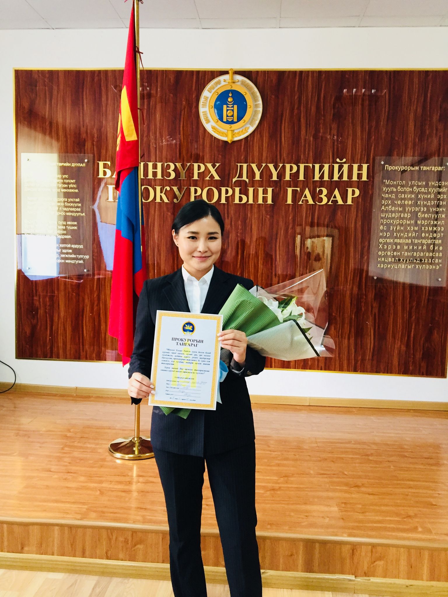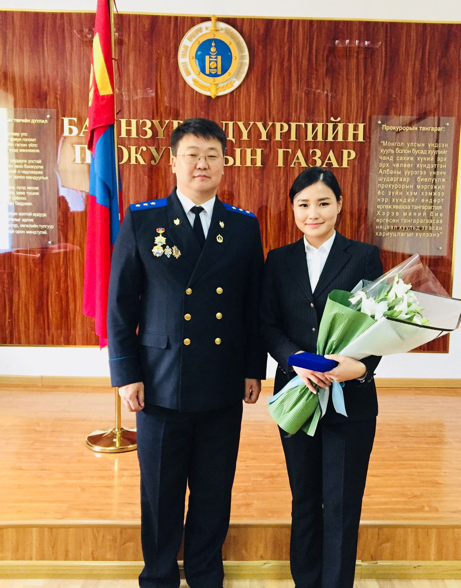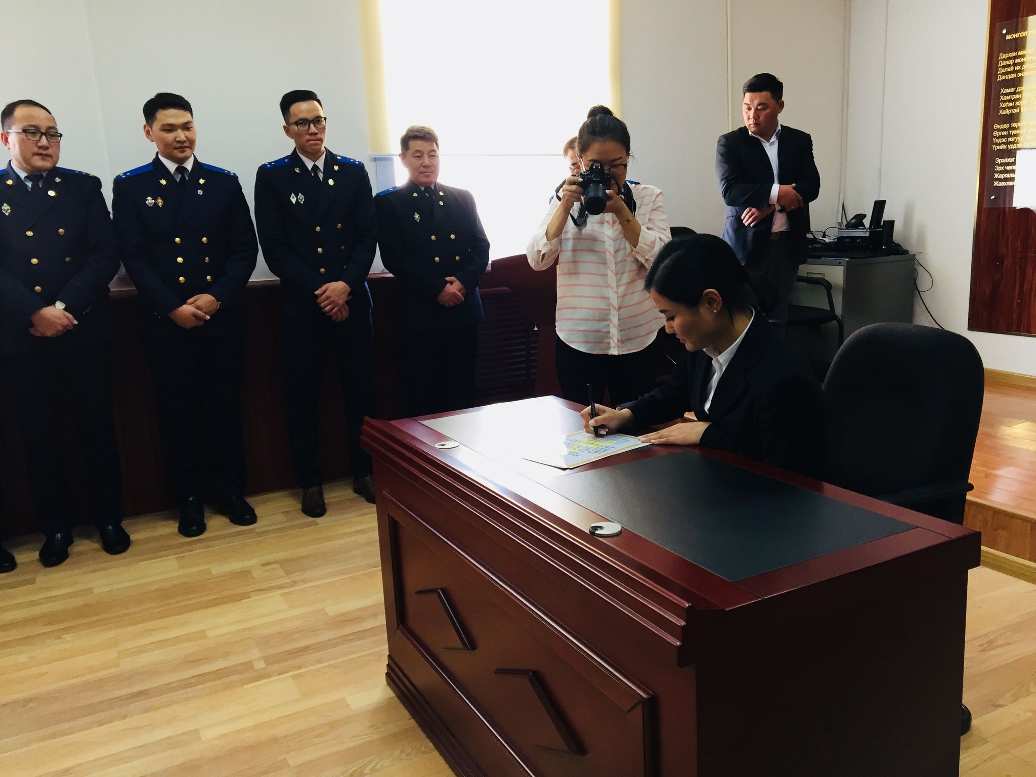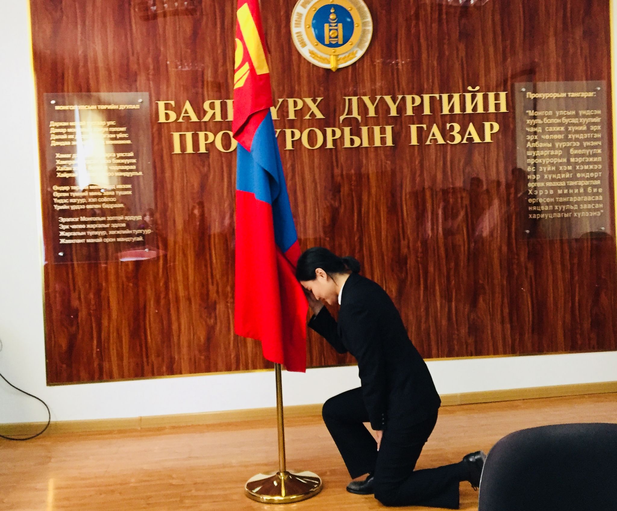 Улсын Ерөнхий прокурорын 2018 оны 10 дугаар сарын 02-ны өдрийн Б/336 дугаартай тушаалаар Баянзүрх дүүргийн прокурорын газарт хэрэг бүртгэх, мөрдөн байцаах ажиллагаанд хяналт тавих хяналтын прокуророор томилогдон ажиллаж буй Энхсүх овогтой Намууны прокурорын тангараг өргөх ёслолын ажиллагаа 2018 оны 10 дугаар сарын 08-ны өдөр тус дүүргийн прокурорын газарт боллоо. Монгол Улсын Ерөнхийлөгчийн 2018 оны 01 дүгээр сарын 31-ний өдрийн 07 дугаартай зарлигийн хавсралтаар батлагдсан “Прокурорын тангараг өргөх ёслолын журам”-д заасны дагуу тус дүүргийн прокурорын газрын зөрчил шалган шийдвэрлэх ажиллагаанд тавих хяналт хариуцсан ахлах прокурор, хууль цаазын итгэмжит зөвлөх Ц.Алдархишиг удирдан явуулсан бөгөөд ёслолын ажиллагаанд бүх прокурор, ажилтнууд оролцов. Энэхүү тангараг өргөх ёслолын ажиллагааг хааж дүүргийн прокурорын газрын ерөнхий прокурор, хууль цаазын шадар зөвлөх Ц.Батболд тангараг өргөж буй прокурорт хандаж хэлсэн үгэндээ: “...Прокурор хэмээх энэхүү нэр хүндтэй албыг хашна гэдэг хувь хүнээс өндөр ёс зүй, мэдлэг, хариуцлагыг шаарддаг бөгөөд хуулинд захирагдаж, хуулийг нэр мөр хэрэгжүүлж ажиллах шаардлагатай” гээд хяналтын прокурор Э.Намууны цаашдын ажил үйлсэд өндөр амжилт хүсэж баяр хүргэлээ. БАЯНЗҮРХ ДҮҮРГИЙН ПРОКУРОРЫН ГАЗРААС МЭДЭЭЛЭВ.