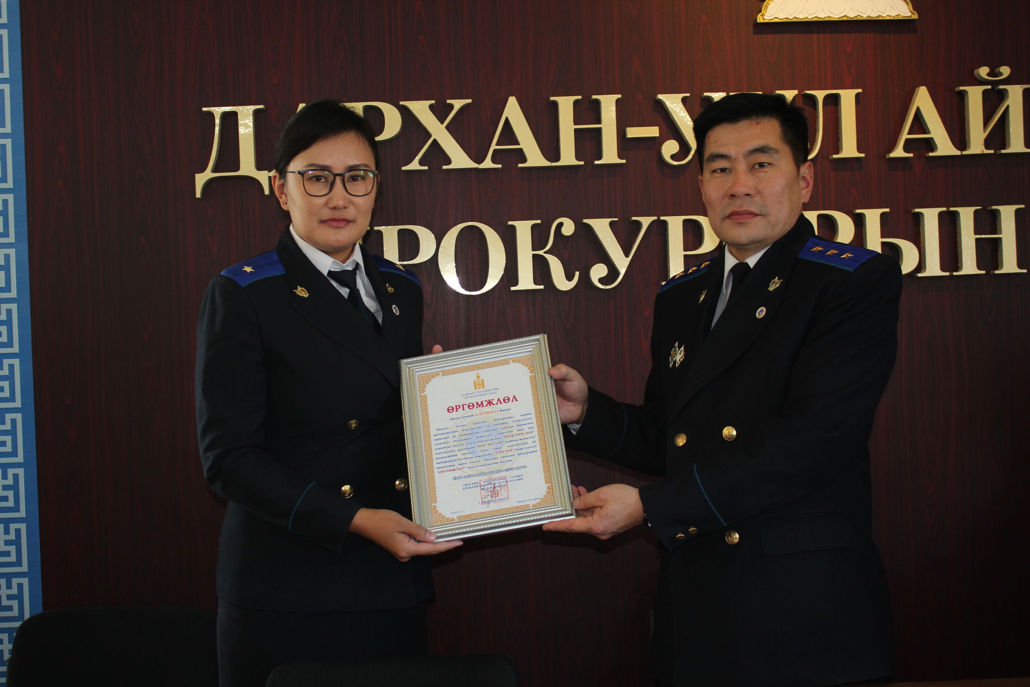Улсын Ерөнхий прокурорын газраас жил бүр уламжлал болгон зохион байгуулж буй "Прокурор-2018", "Туслах ажилтан-2018" мэргэжлийн тэмцээний нэг дүгээр шатны уралдааныг батлагдсан удирдамжийн дагуу 2018 оны 11 дүгээр сарын 13,14-ний өдрүүдэд амжилттай зохион байгууллаа. “Прокурор-2018” мэргэжлийн тэмцээний нэгдүгээр шатанд тус газрын 8 хяналтын прокурор оролцсноос хэрэг бүртгэх, мөрдөн байцаах ажиллагаанд хяналт тавих хяналтын прокурор О.Доржмаа, “Туслах ажилтан-2018” тэмцээний нэгдүгээр шатанд 3 туслах ажилтан оролцсноос захиргааны чиг үүргийг хэрэгжүүлэхэд туслах ажилтан О.Нандинцэцэг нар тус тус тэргүүн байр эзэлж, 2 дугаар шатны тэмцээнд байгууллагаа төлөөлөн оролцохоор шалгарлаа. Тус тэмцээнд амжилттай оролцон тэргүүн байр эзэлсэн прокурор, туслах ажилтан нарт хамт олны зүгээс баяр хүргэн, дараагийн шатанд амжилт гарган оролцохыг хүсч, “Өргөмжлөл” гардуулан, мөнгөн шагналаар урамшууллаа. Дархан-Уул аймгийн прокурорын газраас мэдээлэв.