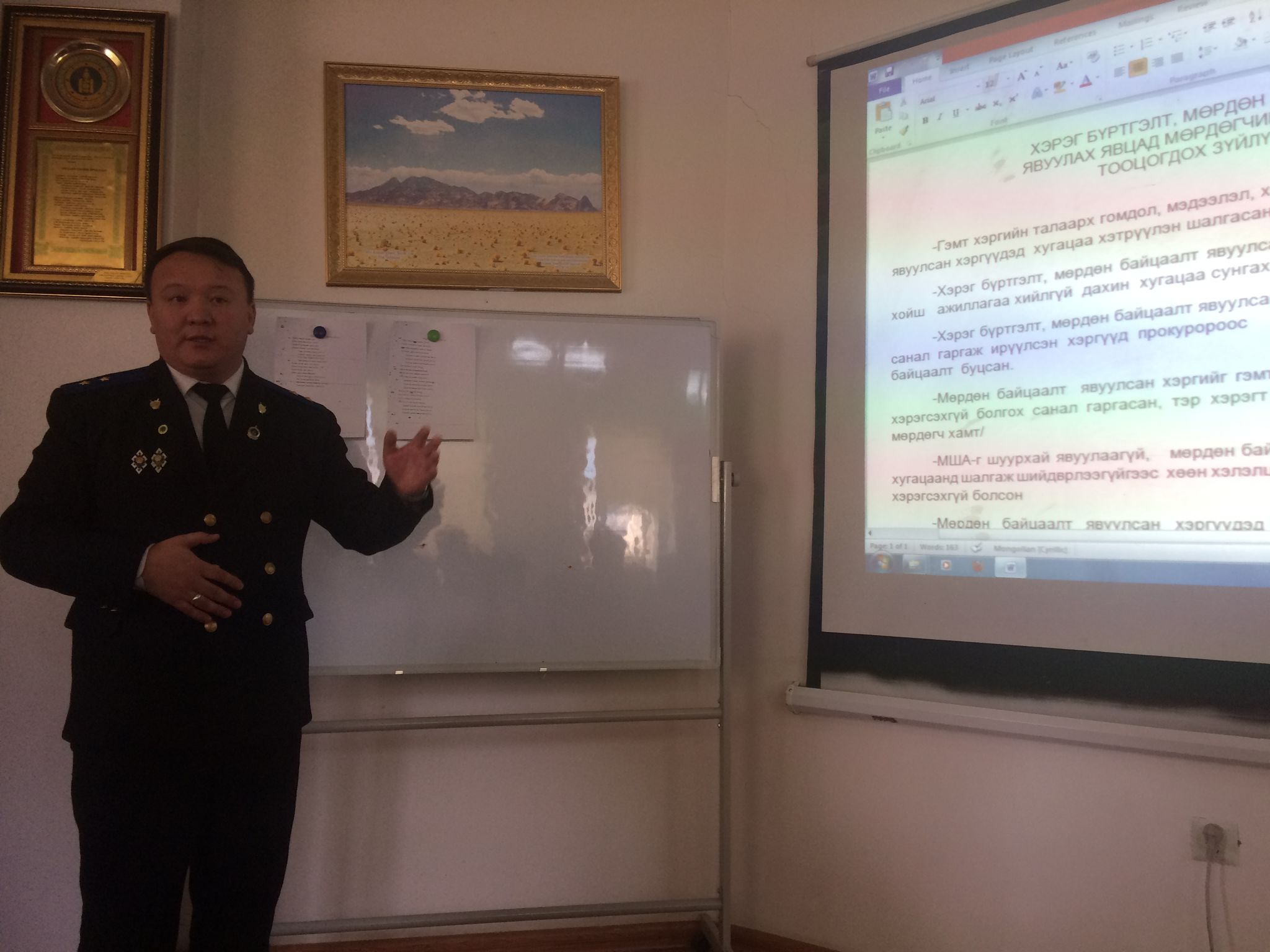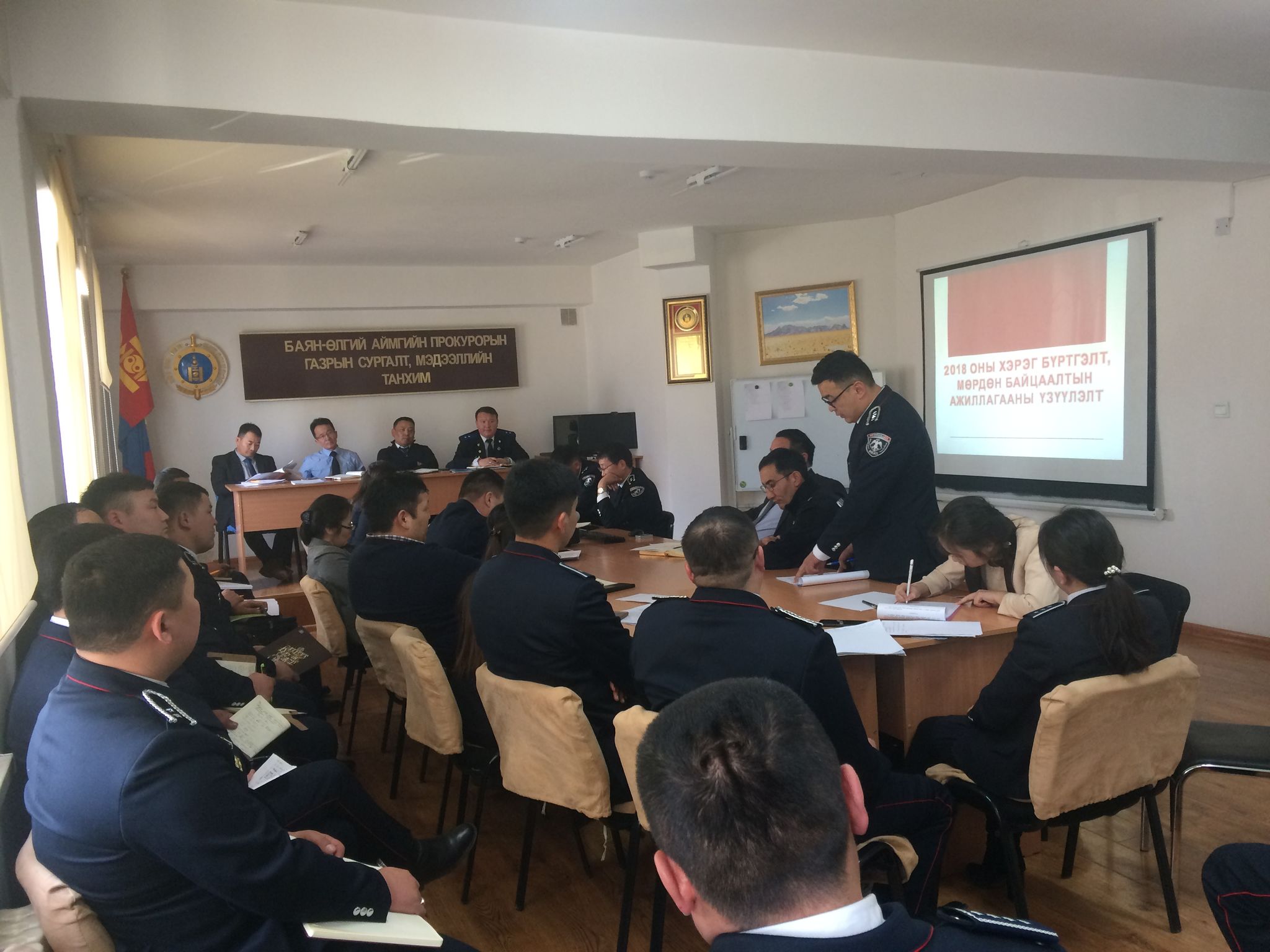 Прокурор, Цагдаагийн газрын эрх бүхий албан тушаалтнуудтай хийсэн сургалт-зөвлөгөөнд аймаг дахь Цагдаагийн газрын Замын цагдаагийн тасаг, Нийтийн хэв журам хамгаалах тасгийн эрх бүхий албан тушаалтнуудаас гадна эргүүлийн цагдаа, цагдаагийн зохицуулагч нар бүрэн хамрагдав.