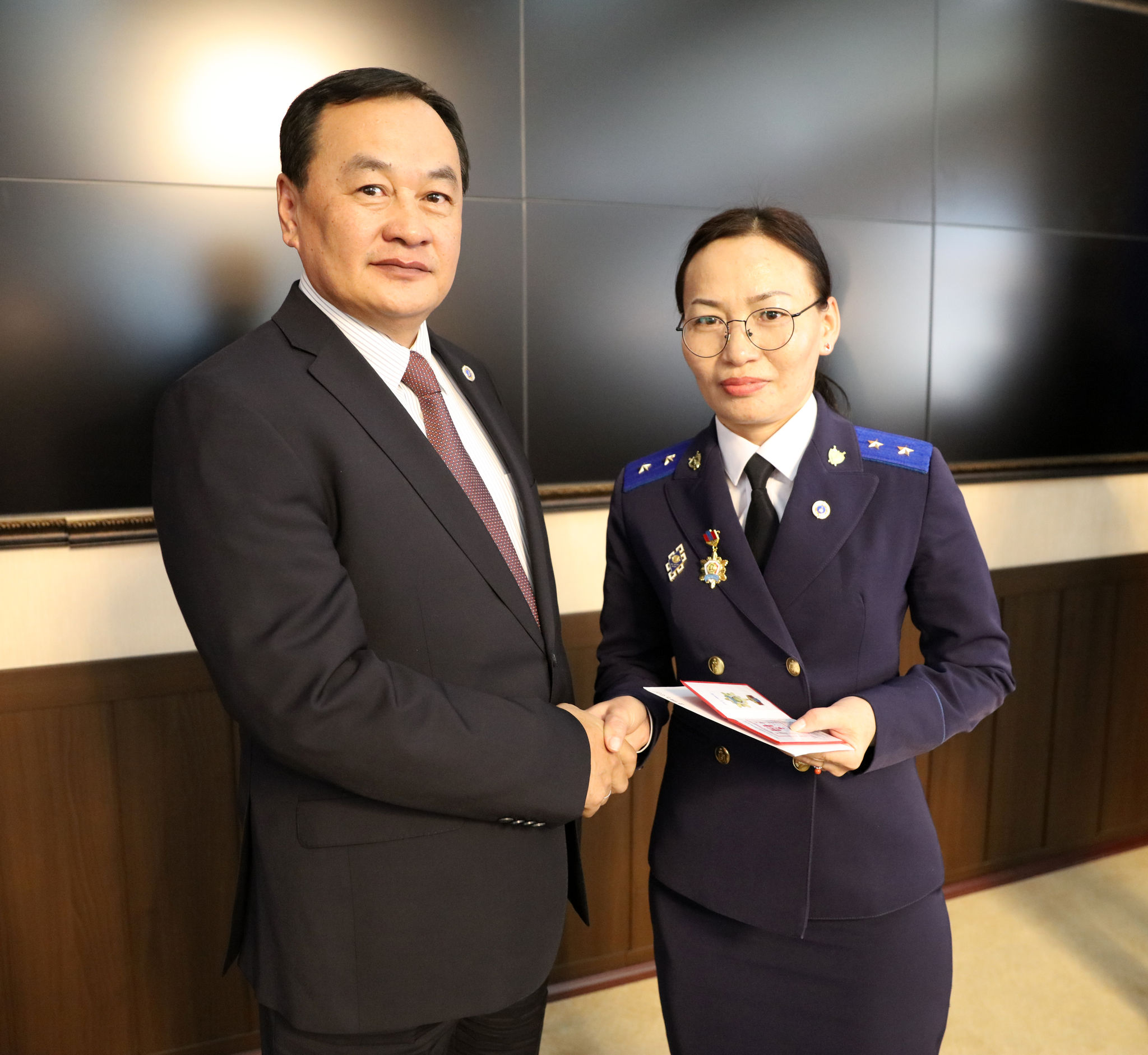 Нэгдсэн сургалт, зөвлөгөөний үеээр эрхэлсэн ажилдаа идэвх зүтгэл, үр бүтээл гарган ажиллаж буйг нь үнэлж Улсын Ерөнхий прокурорын тушаалаар Дорноговь аймгийн прокурорын газрын ахлах прокурор Готовын Ганцэцэгийг “Прокурорын тэргүүний ажилтан“ цол тэмдгээр, Завхан аймгийн прокурорын газрын ахлах прокурор Цэрэндоржийн Эрдэнэтуяа, Хөвсгөл аймгийн прокурорын газрын ахлах прокурор Баярсайханы Болд, Баянхонгор аймгийн прокурорын газрын ахлах прокурор Пүрэвдоржийн Мөнхтуяа нарыг “Прокурорын хүндэт тэмдэг”-ээр тус тус шагнасныг Улсын Ерөнхий прокурор М.Энх-Амгалан гардуулав.