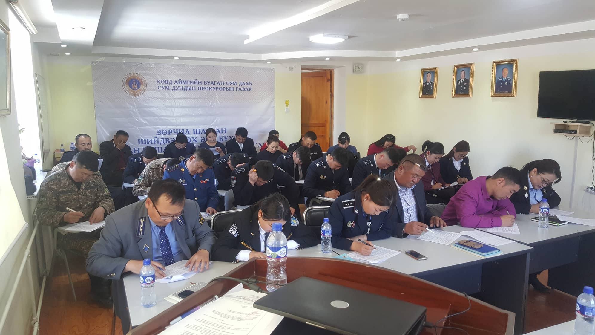 Ховд аймгийн Булган сум дахь Сум дундын прокурорын газрын 1 дүгээр улиралд хийж гүйцэтгэх ажлын төлөвлөгөөнд тусгагдсаны дагуу хяналтын харьяа зөрчил шалган шийдвэрлэх эрх бүхий албан тушаалтнуудын хамтарсан зөвлөгөөнийг 2019 оны 3 дугаар сарын 22-ны өдөр зохион байгуулсан байна.