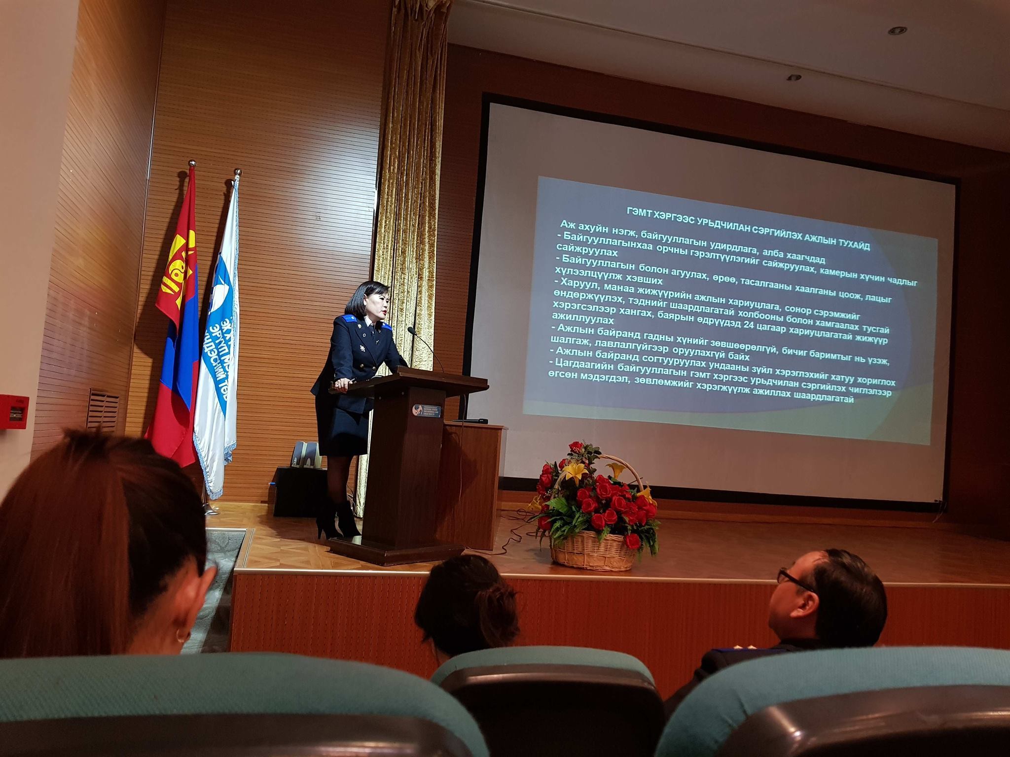 Мөн дээрх ажлын хүрээнд прокуроруудаас 2019 оны 03 дугаар сард Авлигатай тэмцэх газрын Олон нийтийн төвд зохион байгуулагддаг сургалтанд “Авлигын гэмт хэргийн тухай ойлголт, түүнээс урьдчилан сэргийлэх нь“ сэдвээр 600 гаруй албан хаагчдад сургалт зохион байгуулсан. Харилцаа холбооны зохицуулах хороо, Гаалийн Ерөнхий газар, Улаанбаатар хотын гааль, Онцгой байдлын ерөнхий газар, Татварын ерөнхий газар, Нийслэлийн тээврийн газар, Авто тээврийн үндэсний төв, Эрчим хүчний зохицуулах хороо зэрэг 17 байгууллагын 520 орчим улсын байцаагч нарт Зөрчлийн тухай хууль, Зөрчил шалган шийдвэрлэх тухай хуулийг нэг мөр ойлгож хэрэгжүүлэх талаар. Нийслэлийн 23 дугаар дунд сургууль, ШУТИС-ын Геологи, Уул уурхайн сургуулийн 250 гаруй оюутан, сурагчдад “Хар тамхи мансууруулах болон сэтгэцэд нөлөөлөх эм бэлдмэл, бодистой холбоотой захиргааны зөрчил, гэмт хэргийн тухай ойлголт, тэдгээрээс урьдчилан сэргийлэх” сэдвээр сургалт, яриа таниулгыг амжилттай зохион байгуулж ажилласан байна.Нийслэлийн прокурорын газраас мэдээллээ.
