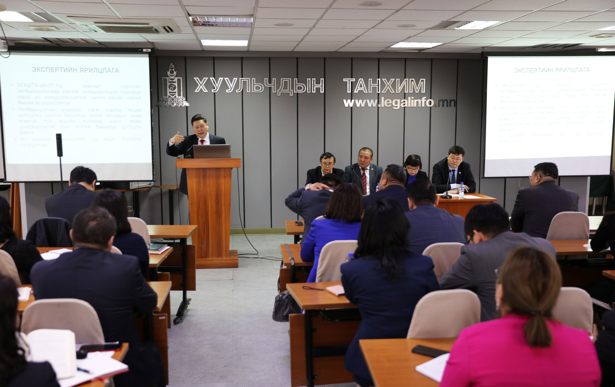 Хэлэлцүүлэгт МУИС-ийн Хууль зүйн сургуулийн нийтийн эрх зүйн тэнхимийн эрхлэгч доктор, профессор Д.Баярсайхан, Монголын Хуульчдын холбооны ерөнхийлөгч Ж.Хунан нар оролцож, үг хэлсэн.
