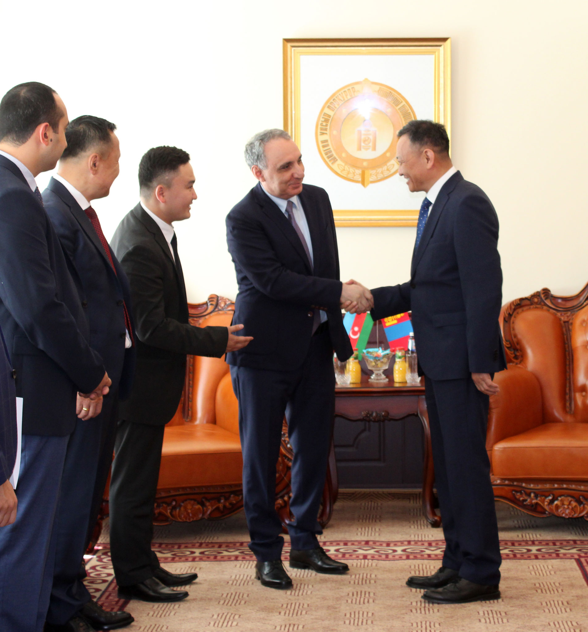 Улсын Ерөнхий прокурор Б.Жаргалсайхан өнөөдөр /2019.07.09/ Авлигатай тэмцэх газрын урилгаар Монгол Улсад албан айлчлал хийж байгаа Бүгд Найрамдах Азербайджан Улсын Ерөнхий прокурорын орлогч, Авлигын эсрэг газрын дарга Камран Алиев тэргүүтэй төлөөлөгчдийг хүлээн авч уулзлаа.