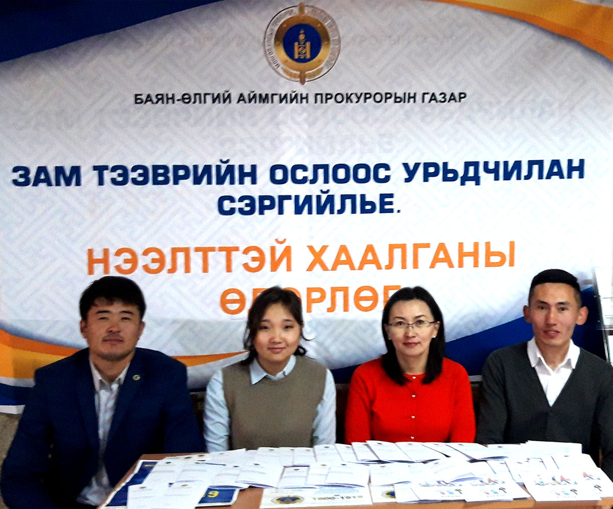 Баян-Өлгий аймгийн прокурорын газар гэмт хэргээс урьдчилан сэргийлэх ажлыг эрчимжүүлэх, хууль тогтоомжийн хэрэгжилтийн талаар иргэдэд мэдээлэл өгөх зорилгоор 2019 оны 09 дүгээр сарын 16-ны өдөр “Зам тээврийн ослоос урьдчилан сэргийлье” сэдэвт нээлттэй хаалганы өдөрлөг зохион байгуулав.