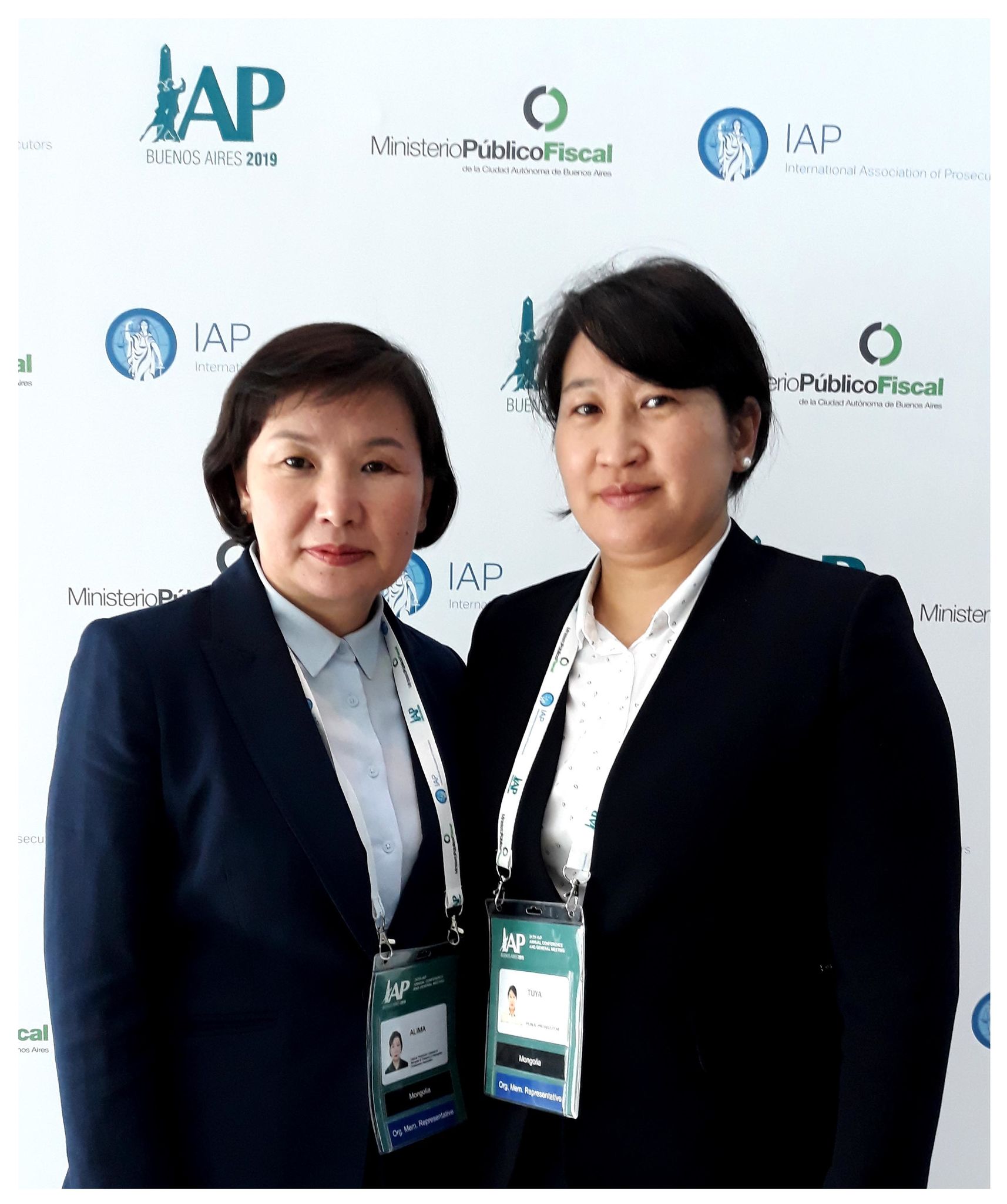 Монголын Прокуроруудын холбооны ерөнхийлөгч С.Алиманцэцэг, Улсын Ерөнхий прокурорын газрын Гадаад харилцаа, эрх зүйн туслалцааны хэлтсийн хяналтын прокурор У.Эрдэнэтуяа нар 2019 оны есдүгээр сарын 15-наас 19-ний өдрүүдэд Бүгд Найрамдах Аргентин Улсын нийслэл Буэнос-Айрес хотноо “Эрх зүйн ялгаатай тогтолцоо ба олон улсын хамтын ажиллагаа” сэдвээр зохион байгуулагдсан Олон Улсын Прокуроруудын Холбооны 24 дэх удаагийн ээлжит чуулганд оролцоод ирлээ.