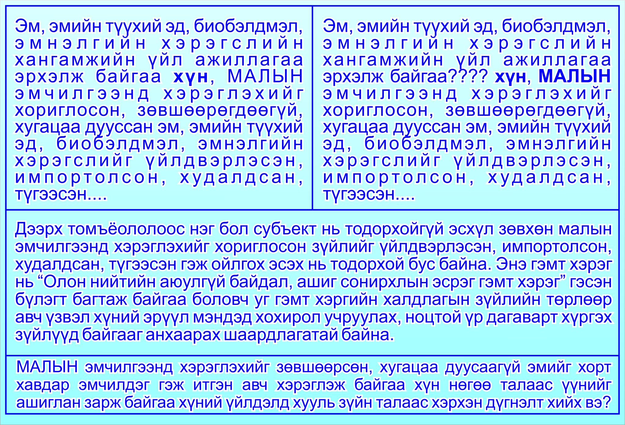 Нэг. Аливаа хуулийн тодорхой бус зохицуулалтаас шалтгаалж нийгэмд бий болсон эсхүл бий болзошгүй нөхцлийг арилгах нь өөрөө аливаа гэмт хэргээс урьдчилан сэргийлэх чухал нөлөөтэй байдаг. Уламжлалт эмчилгээ, эмийг эртнээс дээдэлж ирсэн Азийн улс орнууд тэртусмаа Монгол улсын хувьд ургамлын гаралтай зөвшөөрөгдсөн “уламжлалт эм”-ийг хэрэглэх нь түгээмэл бөгөөд үүнийг дагаад хувиараа эм буюу “тан” барьдаг, энэ нь амьдралын эх үүсвэр болсон хүн цөөнгүй байгааг бүгд мэддэг, нийгэмд “хүлээн зөвшөөрөгдөөд” байгаа нь нууц биш юм.