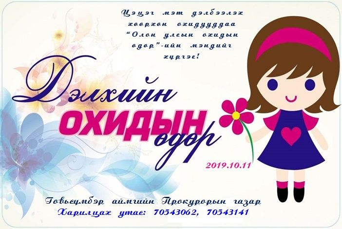 Энэхүү өдрийг тохиолдуулан Говьсүмбэр аймгийн прокурорын газар Сүмбэр сумын ерөнхий боловсролын 5 дугаар сургуулийн 100 гаруй сурагчдад “Охидоо хамгаалцгаая” сэдэвт гэмт хэргээс урьдчилан сэргийлэх гарын авлага тарааж, прокурорын байгууллагын үйл ажиллагааны талаар тайлбарлах ажлыг зохион байгуулсан байна.