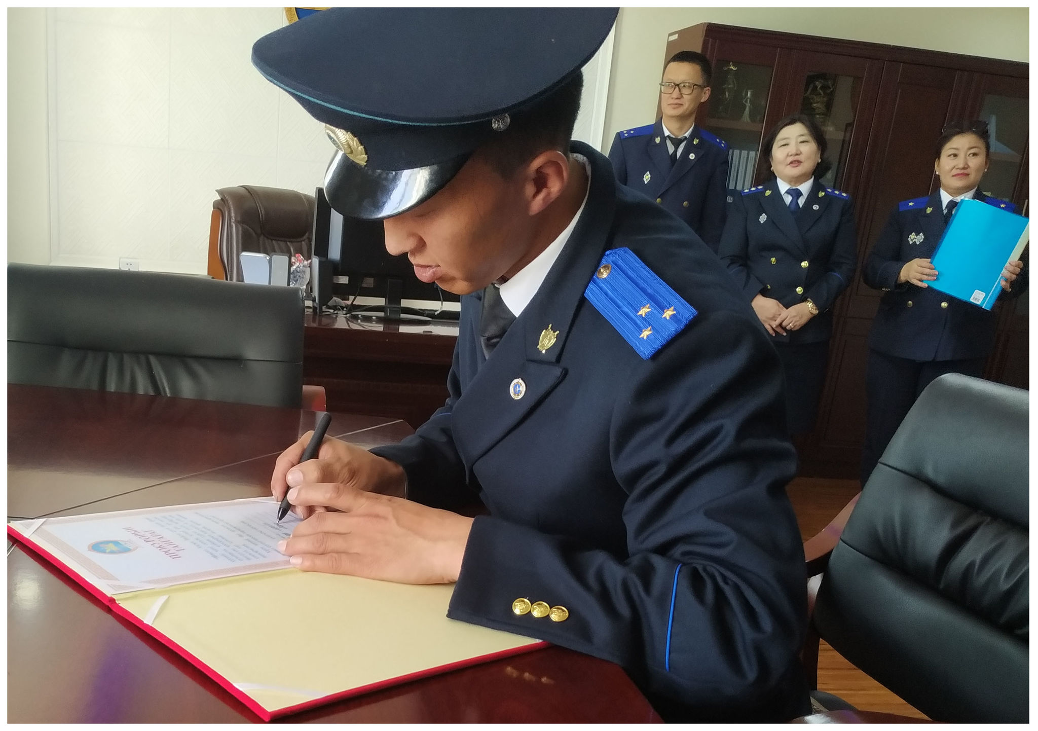 Тангараг өргөх ёслолын ажиллагааг “Прокурорын тангараг өргөх ёслол”-ын журамд заасны дагуу Говьсүмбэр аймгийн прокурорын газрын хяналтын прокурор, хууль цаазын ахлах зөвлөх Э.Нэргүй удирдан явуулж, тус газрын прокурор ажилтнууд прокурорын албан тушаалд шинээр томилогдсон Ш.Батсүхэд баяр хүргэж, цаашдын ажилд нь амжилт хүссэн байна.