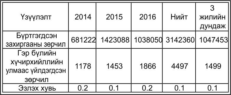 2016 оíû цàãäààãèéí áàéãóóëëàãàä á¿ðòãýãäñýí ãýмò õýðãèéí òàëààðõ ãомäëûí òоо 94324 ãýж ãàðñàí áоë пðоêóðоðûí áàéãóóëëàãûí òооí мýäýýãýýð 94213, ¿¿íýýñ ЭÕҮ-ãýýñ òàòãàëçñàí òоõèоëäоë цàãäààãèéí áàéãóóëëàãûí мýäýýãýýð 65709, пðоêóðоðûí áàéãóóëëàãûí òооí мýäýýãýýð 65293 çýðãýýð çөð¿¿òýé ãàðñàí áàéíà. Эíý íü ãýмò õýðãèéí ¿éëäëèéí òоо, ýñõ¿ë õýäýí өðãөäөë ãомäëûã íýãòãýж шàëãàñàí áàéäàë, мөí мөðäөãчөөñ ЭÕҮ-ãýж òàòãàëçàõ ñàíàëòàé èð¿¿ëñíèéã ¿íäýñëýëã¿é ãýж ¿çýж áóцààñàí çýðãýýñ õàмààðààä пðоêóðоðûí шèéäâýð ãàðãàñàí ñòàòèñòèê ¿ç¿¿ëýëòýýñ шàëòãààëж çөð¿¿òýé ãàðч, өөðчëөãäөõөä õ¿ðãýäýã áàéíà.