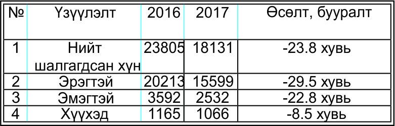 2017 онд эрүүгийн хэргийн анхан шатны шүүхээр ял шийтгүүлэгчдийн тоо 37.4 хувиар өссөн байна.