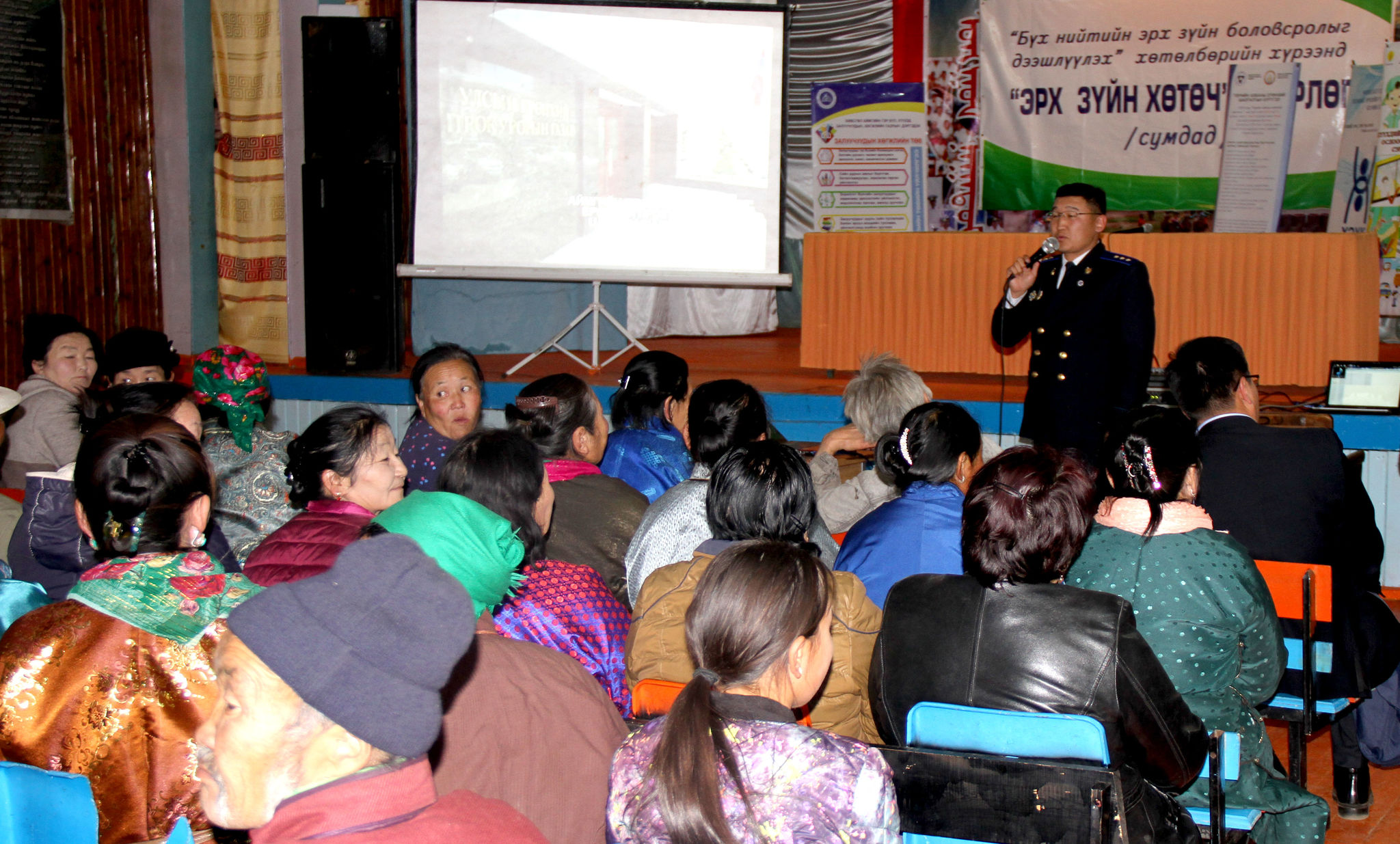 Мөн зөрчил шалган шийдвэрлэх эрх бүхий албан тушаалтан болон иргэдэд “Эрүүгийн хууль, Зөрчлийн тухай хууль, Зөрчил шалган шийдвэрлэх тухай хууль, Гэмт хэргээс урьдчилан сэргийлэх тухай хууль, Прокурорын тухай хууль”-иар сургалт зохион байгуулсан байна.