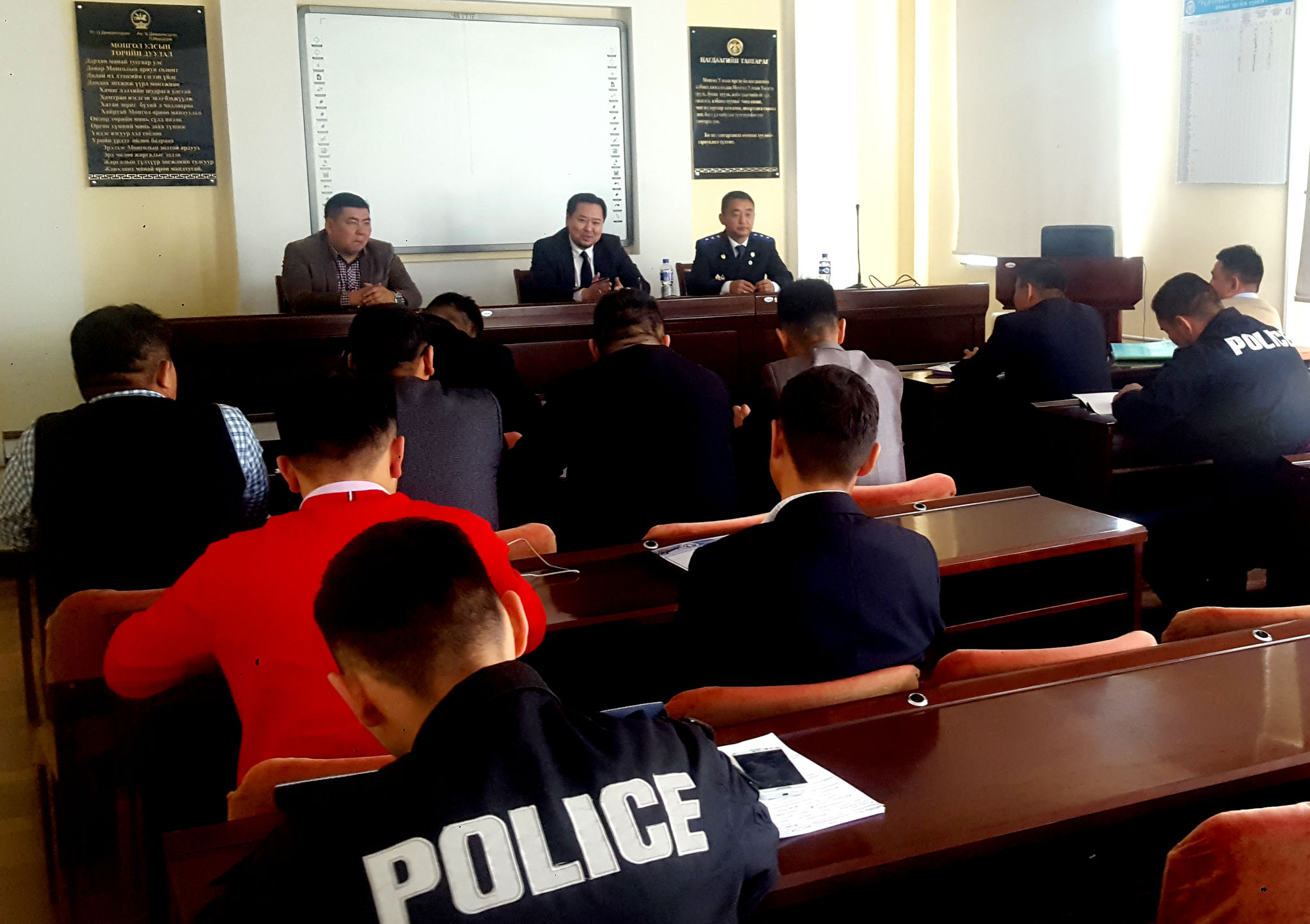 Мөн тус аймгийн Цагдаагийн газрын нийт мөрдөгч нарт Эрүүгийн хууль, Эрүүгийн хэрэг хянан шийдвэрлэх тухай хууль, Зөрчлийн тухай хууль, Зөрчил шалган шийдвэрлэх тухай хуулиудын үзэл баримтлал, тодорхой төрлийн гэмт хэргийн мөрдөн шалгах аргачлалын талаар мэдээлэл өгч, харилцан санал солилцжээ.