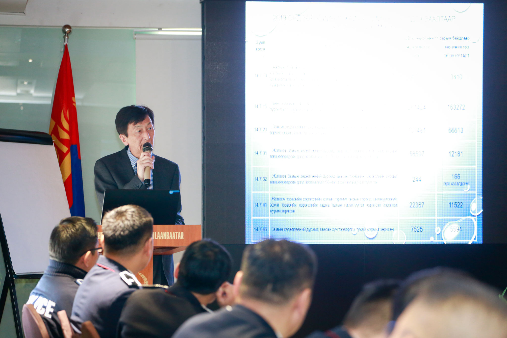 Зөвлөгөөнд Тээврийн прокурорын газрын ерөнхий прокурорын орлогч Д.Сарантуяа “Хот хоорондын нийтийн тээврийн жолооч нарын холбогдсон гэмт хэргийн шалтгаан, нөхцөл, түүнийг арилгах арга зам” сэдвээр илтгэл тавьж, Тээврийн цагдаагийн албаны Орон нутгийн замын хяналтын хэлтсийн дарга, цагдаагийн дэд хурандаа М.Отгонбаяр “Хот хоорондын нийтийн тээврийн жолооч нараас автотээврийн хэрэгслийн хөдөлгөөний аюулгүй байдал, ашиглалтын журам зөрчих гэмт хэрэгт холбогдсон байдал”, мөн албаны Техник замын хэлтсийн дарга, цагдаагийн хурандаа Ч.Жаргалсайхан “Хот хоорондын нийтийн тээврийн жолооч нараас Замын хөдөлгөөний аюулгүй байдлын болон Зөрчлийн тухай хууль тогтоомж зөрчсөн зөрчил гаргасан байдал”, Автотээврийн үндэсний төвийн Хөдөлгөөний удирдлагын хэлтсийн дарга К.Айдос “Хот хоорондын нийтийн тээврийн үйлчилгээнд зам тээврийн осол, хэрэг гарахаас урьдчилан сэргийлэх талаар авч байгаа арга хэмжээ” сэдвээр тус тус мэдээлэл хийсэн юм.