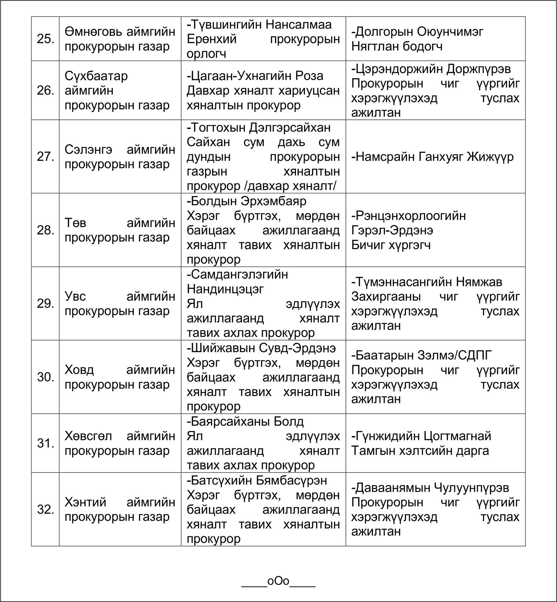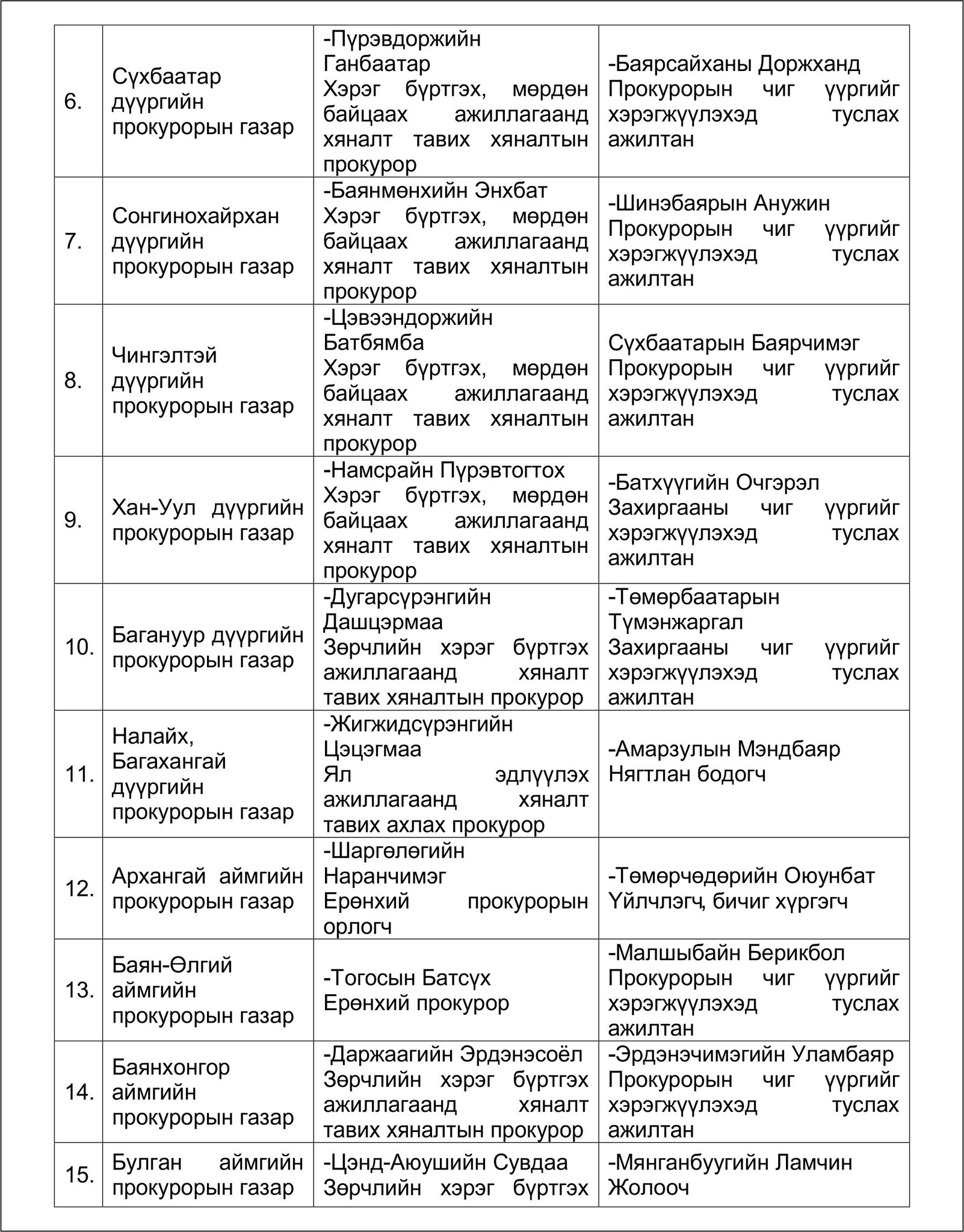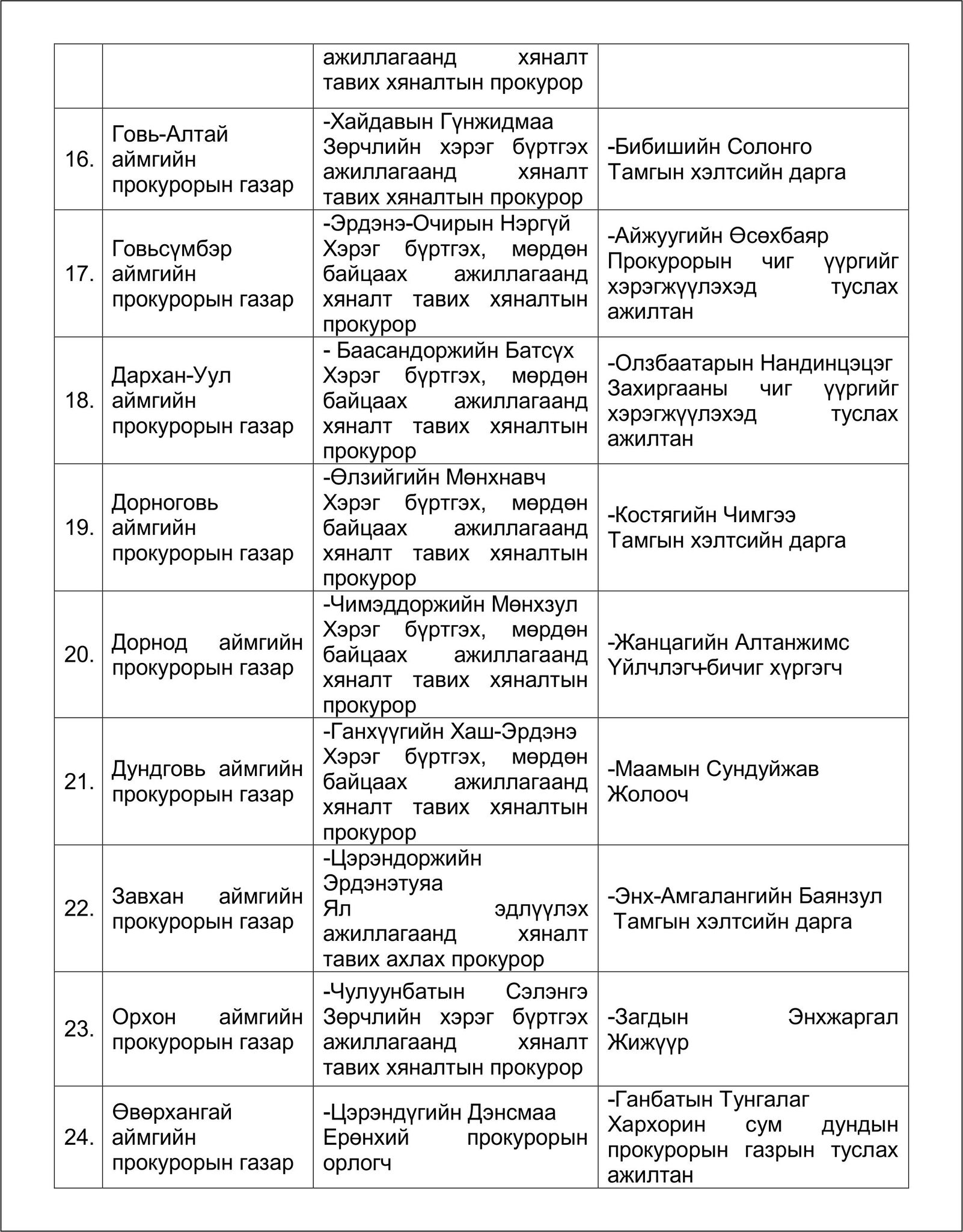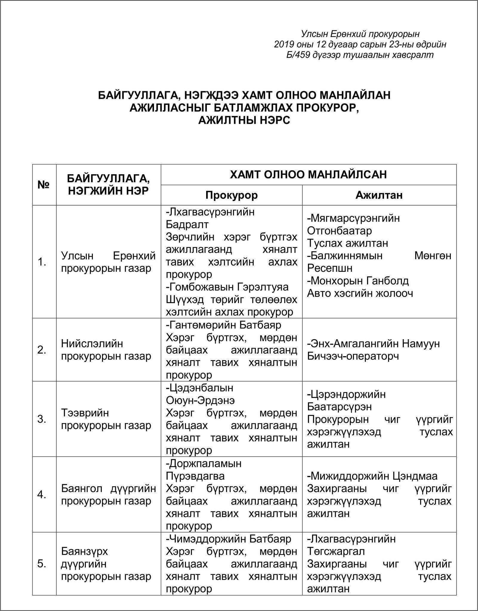 2019 онд байгууллага, нэгждээ хамт олноо манлайлан ажилласан прокурор, ажилтнууд: