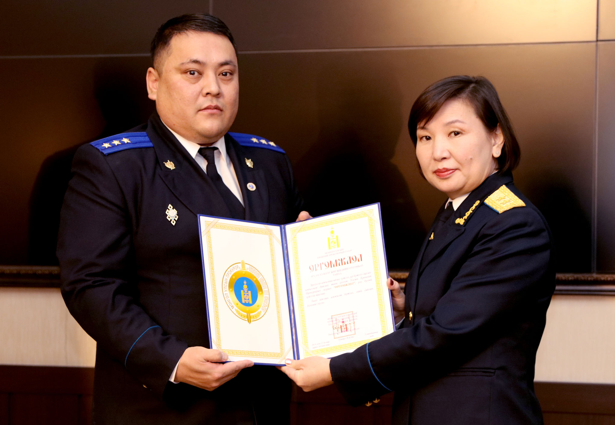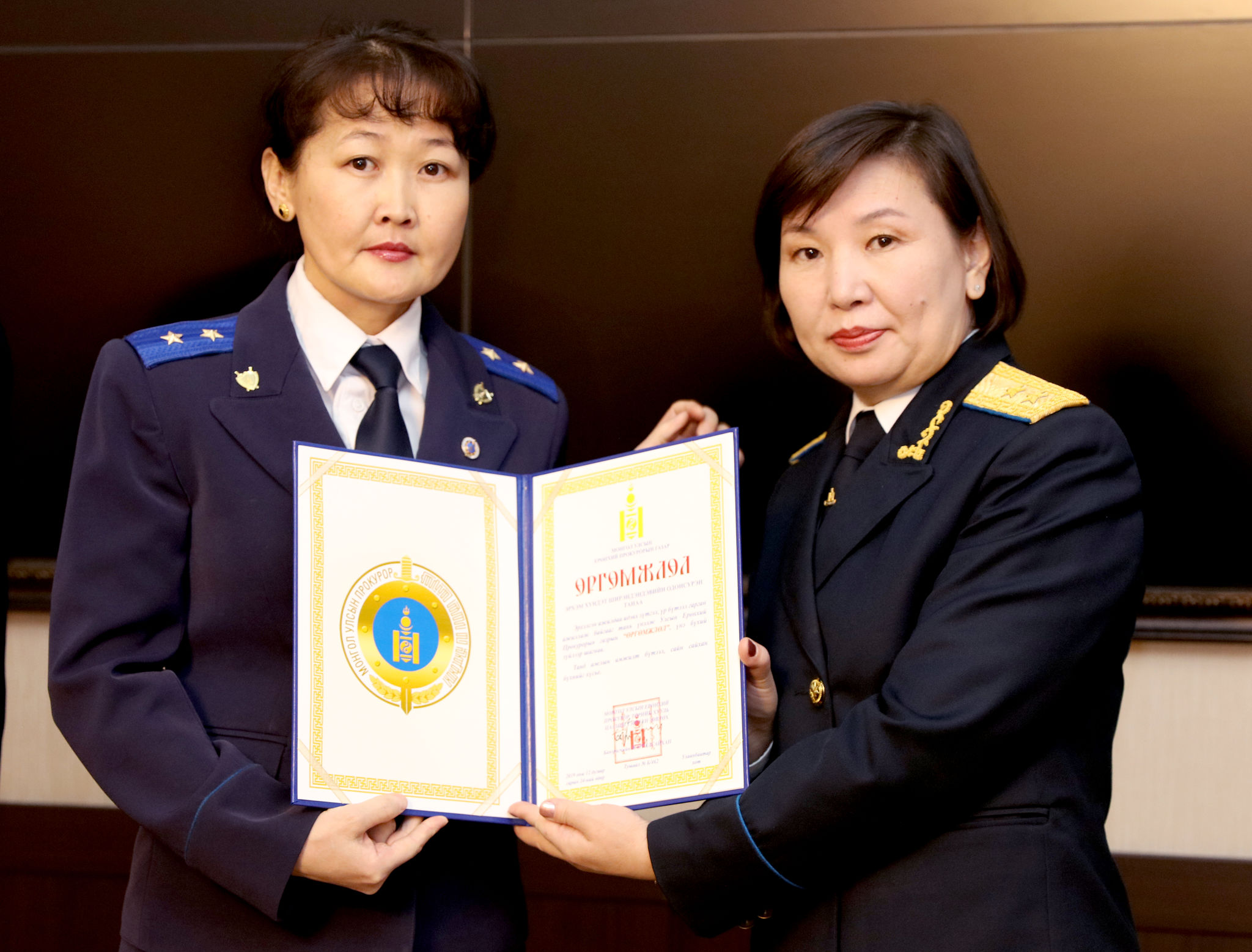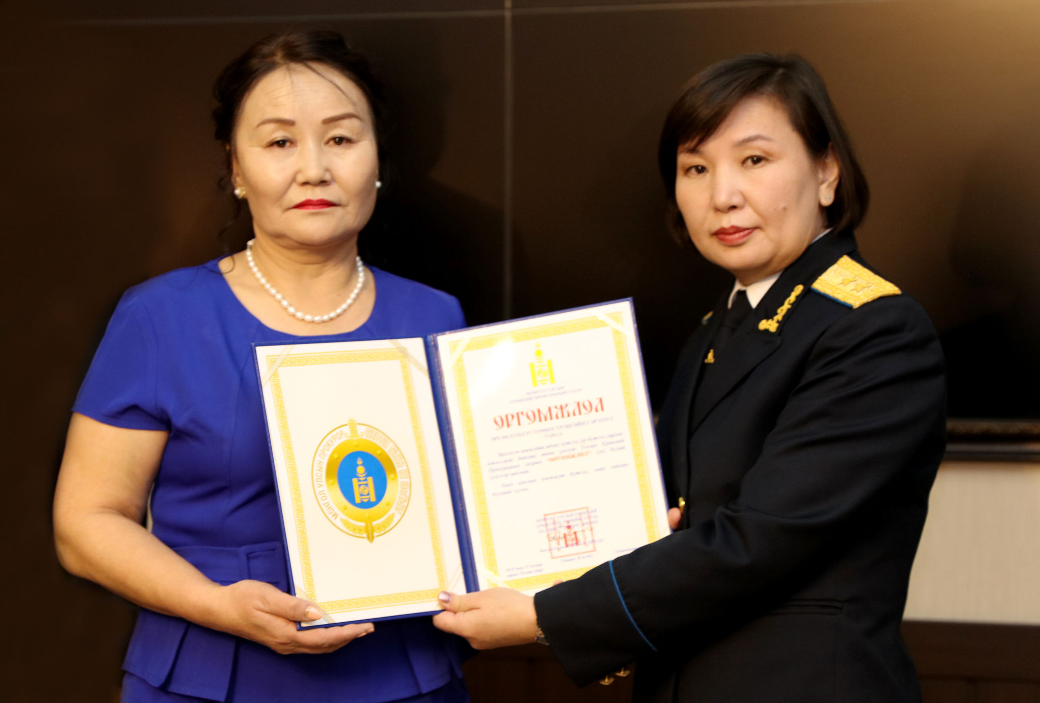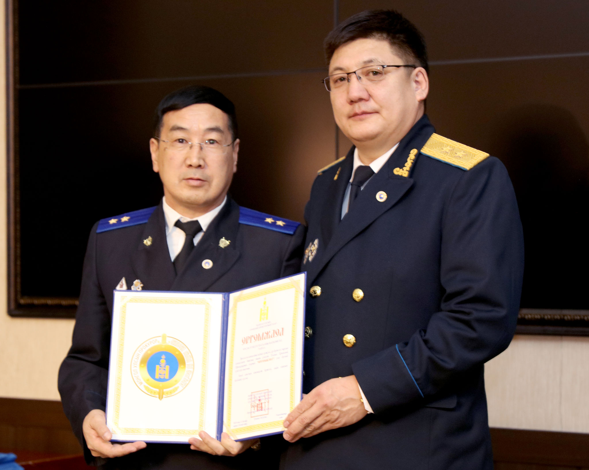 Эрхэлсэн ажилдаа идэвх зүтгэл, үр бүтээл гарган ажиллаж байгаа Улсын Ерөнхий Прокурорын газрын зохион байгуулалтын бүтцийн нэгжийн прокурор, ажилтнуудад “ӨРГӨМЖЛӨЛ”, мөнгөн урамшил гардуулах ёслолын ажиллагаа 2019 оны 12 дугаар сарын 27-ны өдөр Улсын Ерөнхий Прокурорын газарт боллоо.