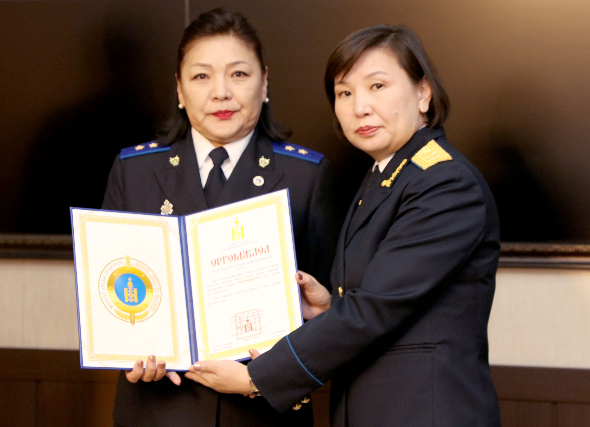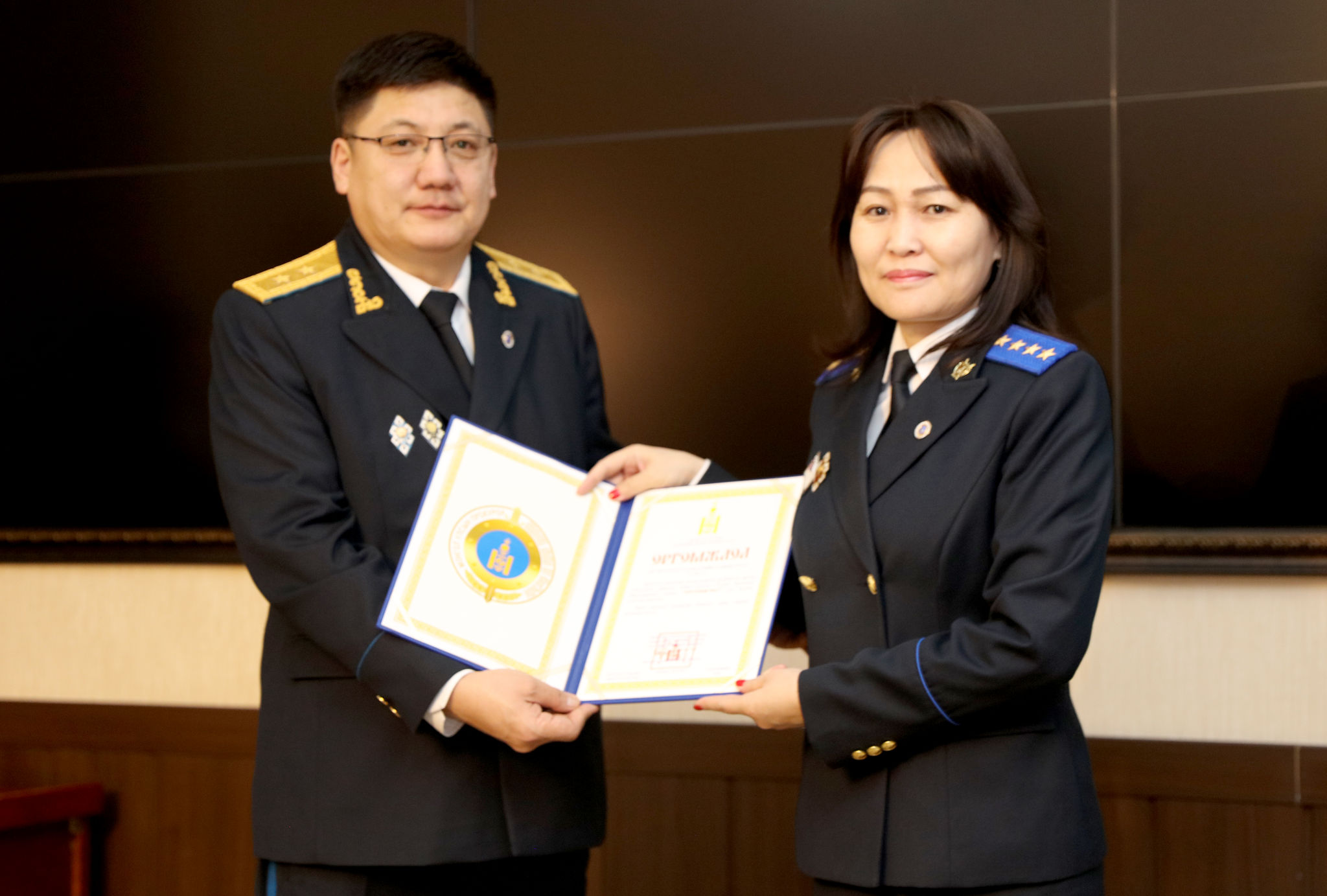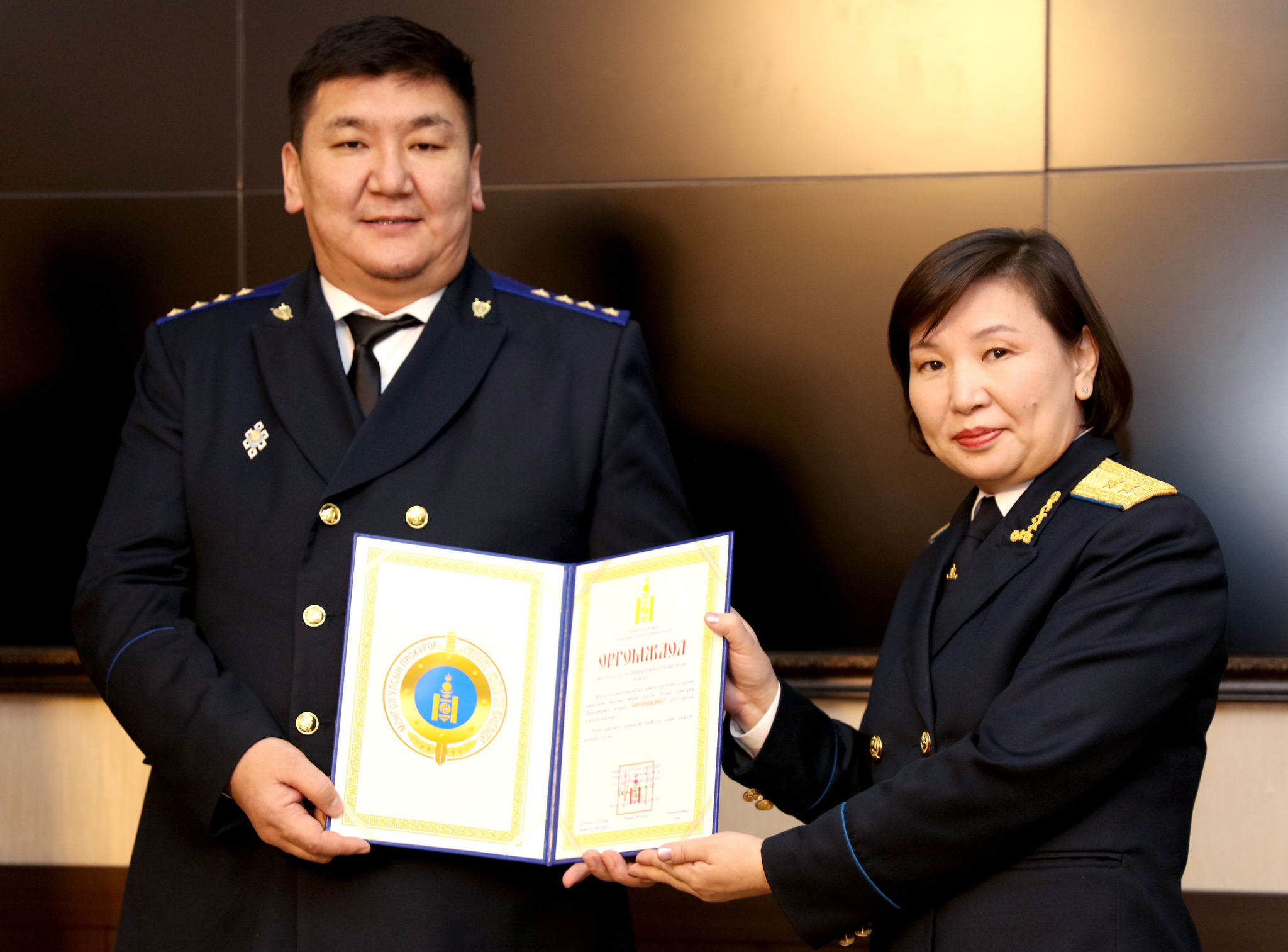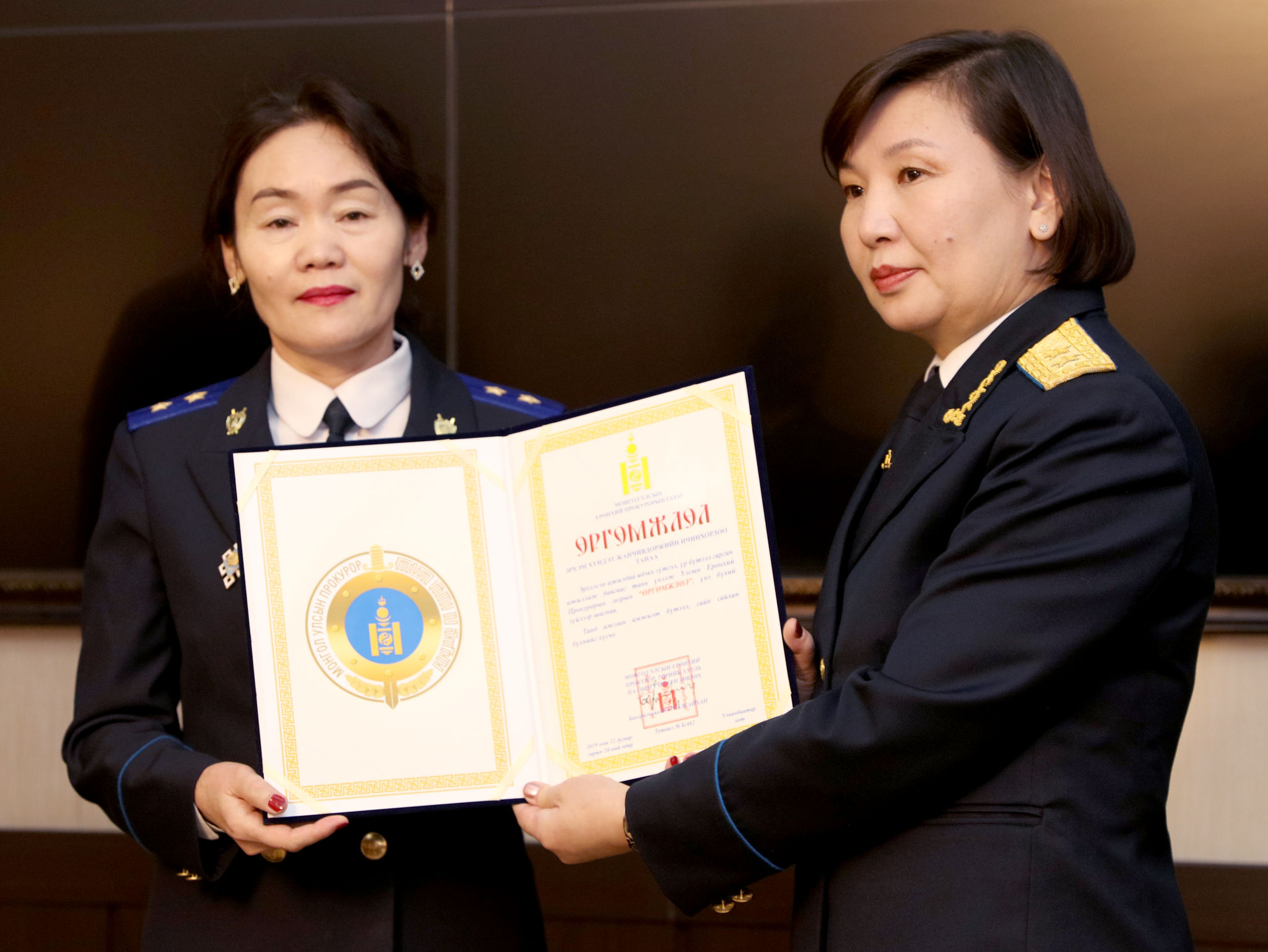 Эрхэлсэн ажилдаа идэвх зүтгэл, үр бүтээл гарган ажиллаж байгаа Улсын Ерөнхий Прокурорын газрын зохион байгуулалтын бүтцийн нэгжийн прокурор, ажилтнуудад “ӨРГӨМЖЛӨЛ”, мөнгөн урамшил гардуулах ёслолын ажиллагаа 2019 оны 12 дугаар сарын 27-ны өдөр Улсын Ерөнхий Прокурорын газарт боллоо.