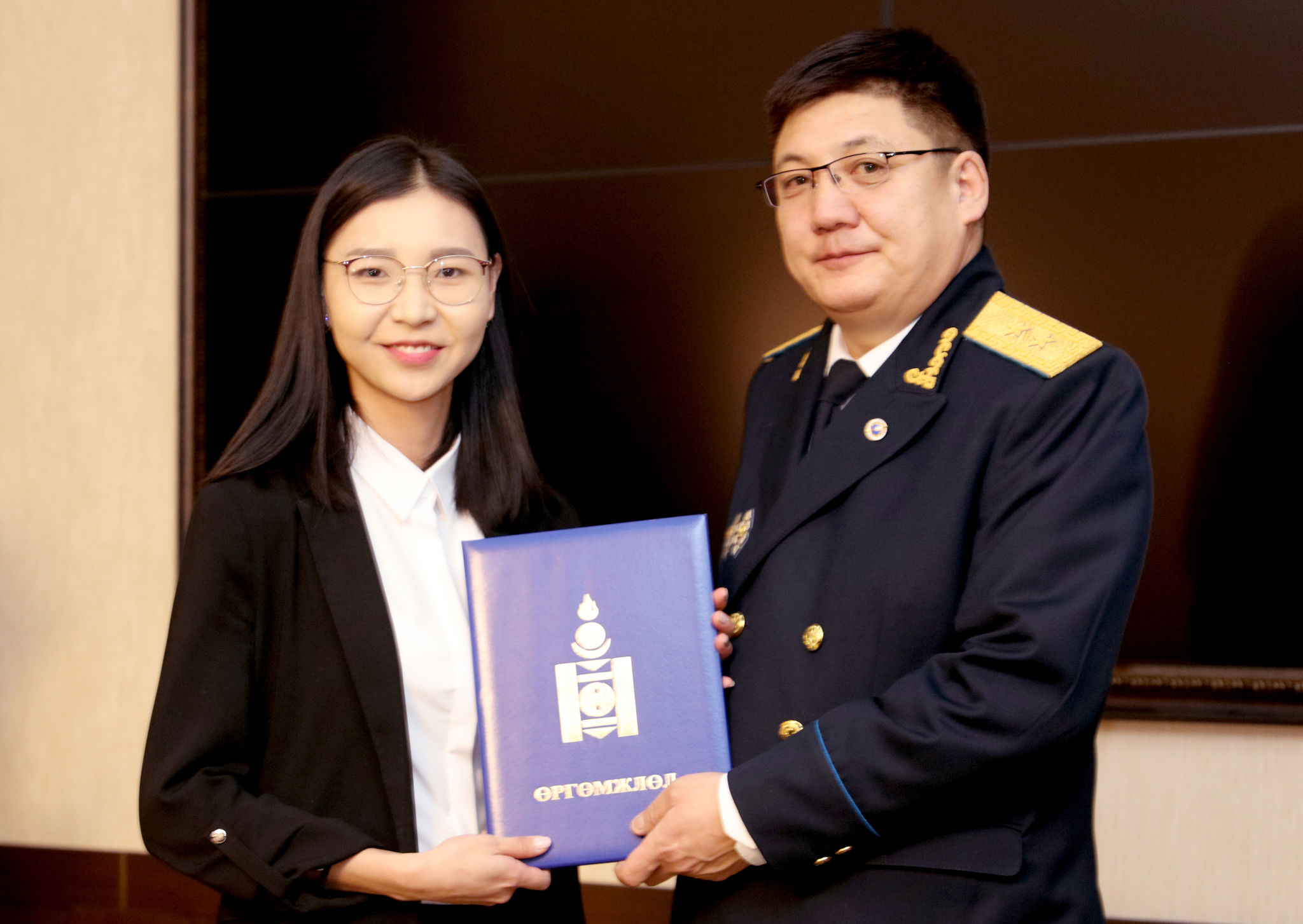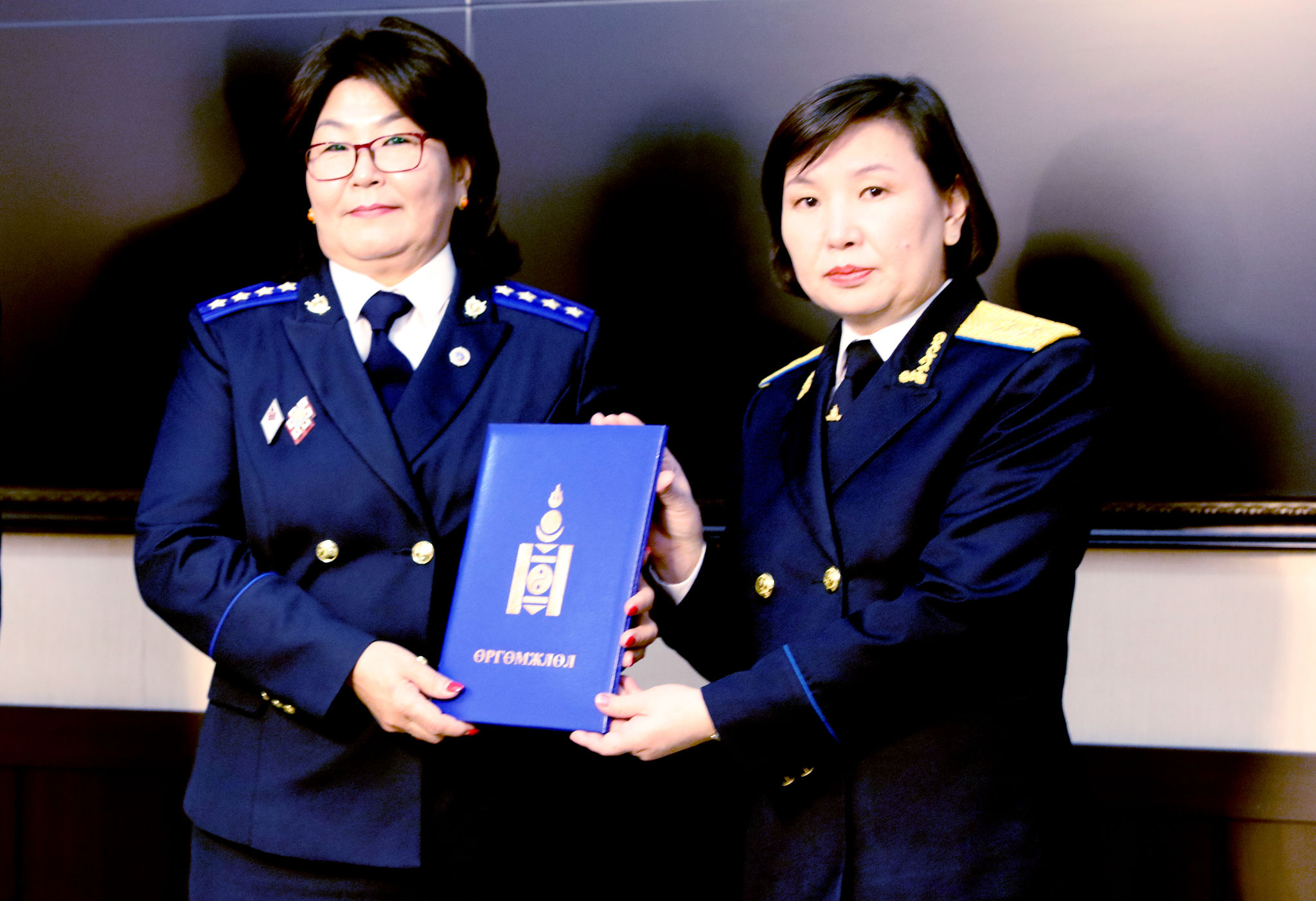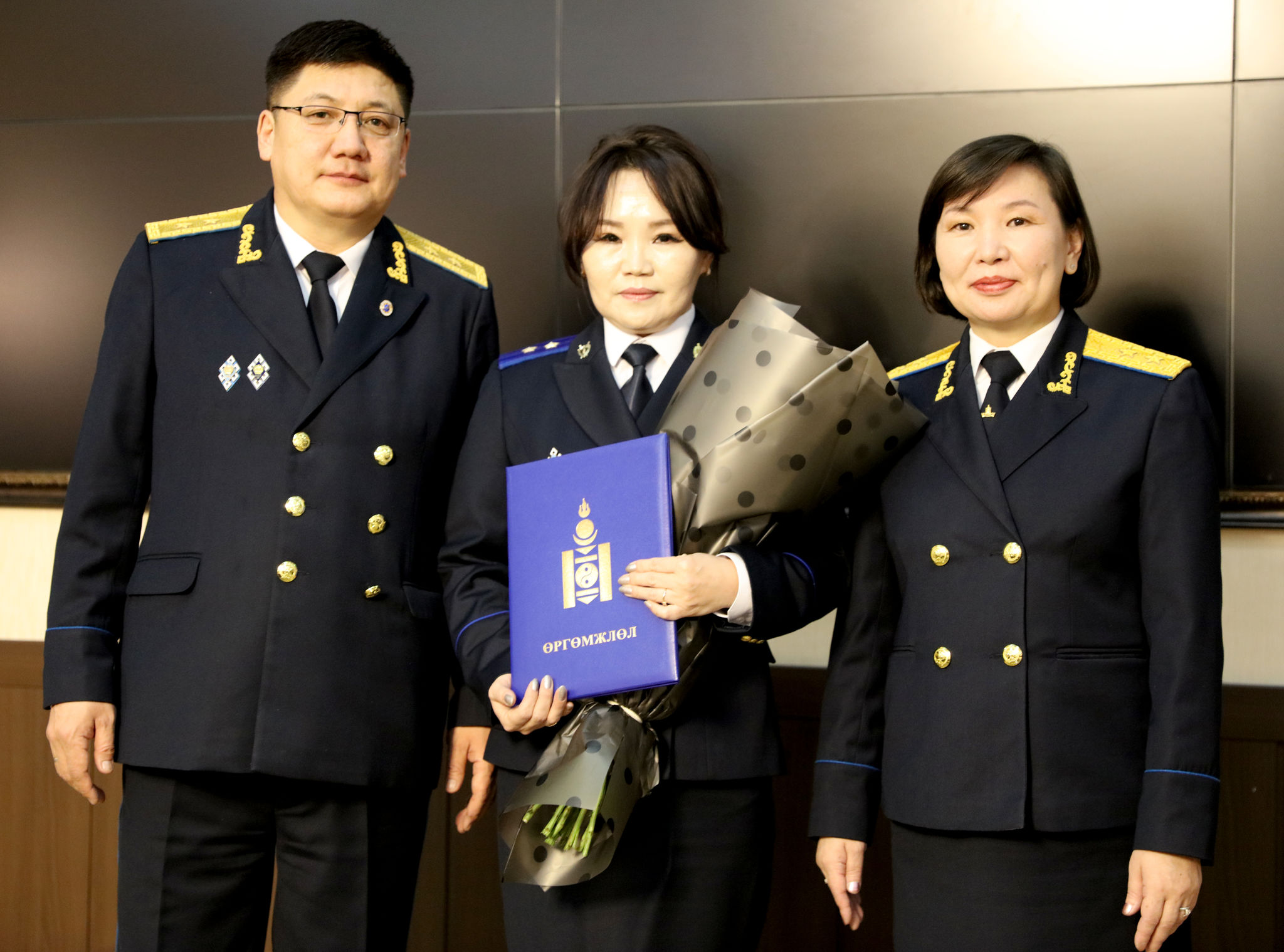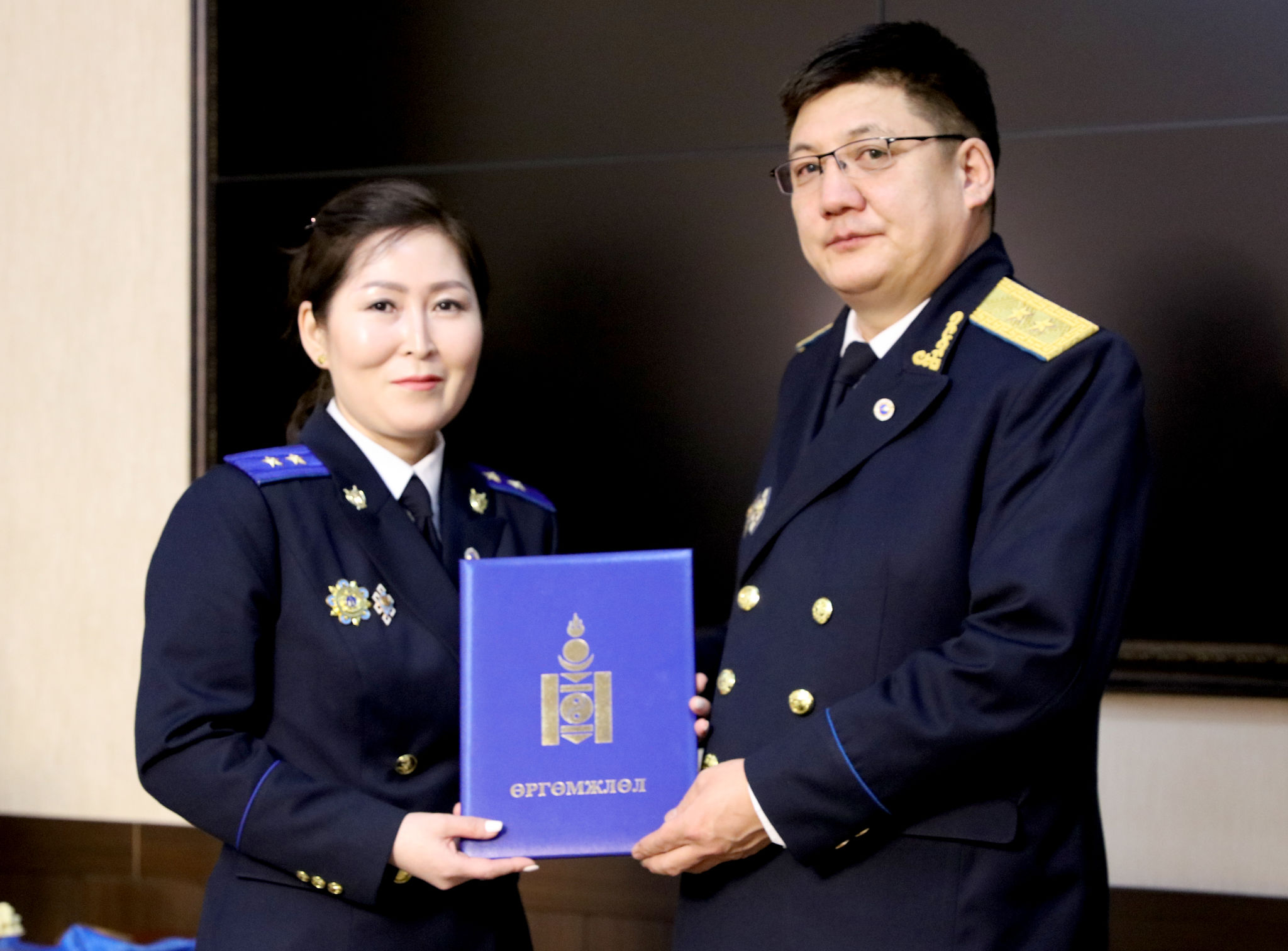 Эрхэлсэн ажилдаа идэвх зүтгэл, үр бүтээл гарган ажиллаж байгаа Улсын Ерөнхий Прокурорын газрын зохион байгуулалтын бүтцийн нэгжийн прокурор, ажилтнуудад “ӨРГӨМЖЛӨЛ”, мөнгөн урамшил гардуулах ёслолын ажиллагаа 2019 оны 12 дугаар сарын 27-ны өдөр Улсын Ерөнхий Прокурорын газарт боллоо.