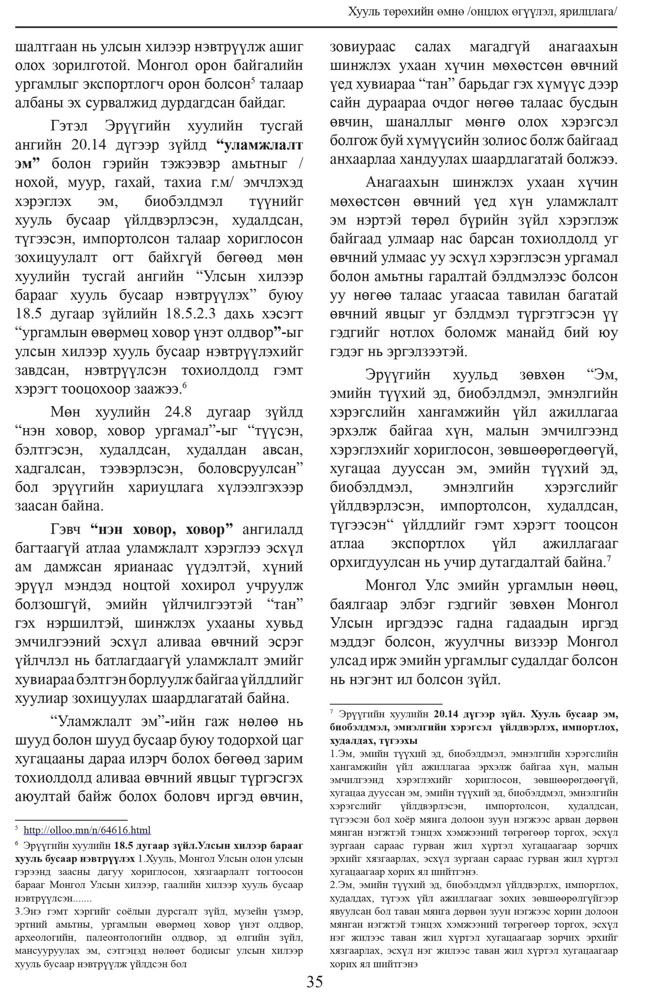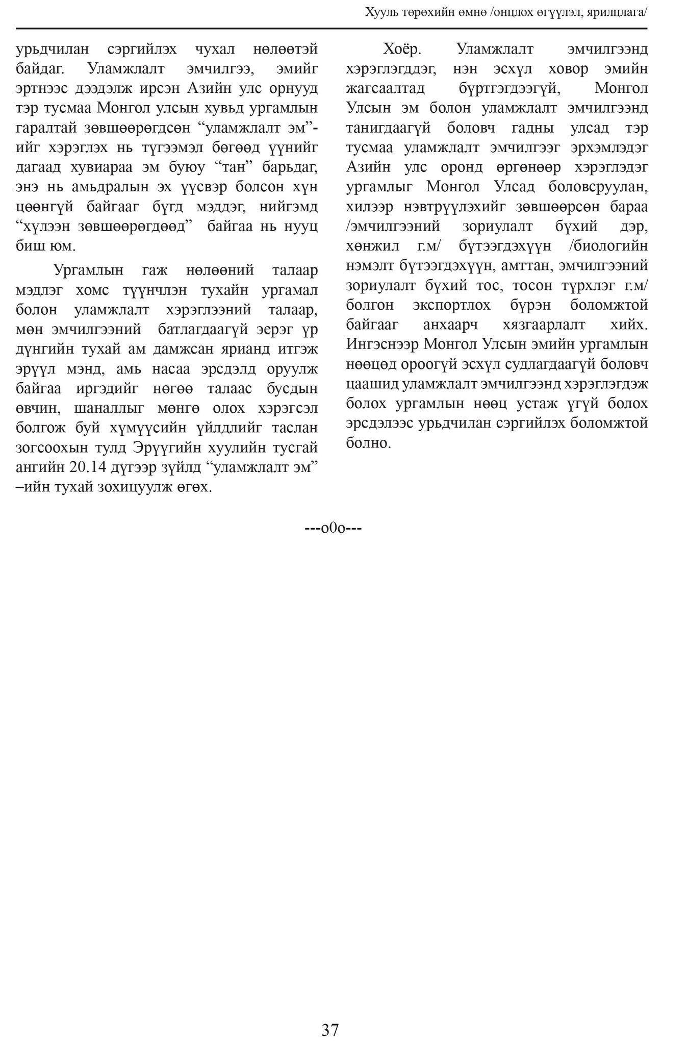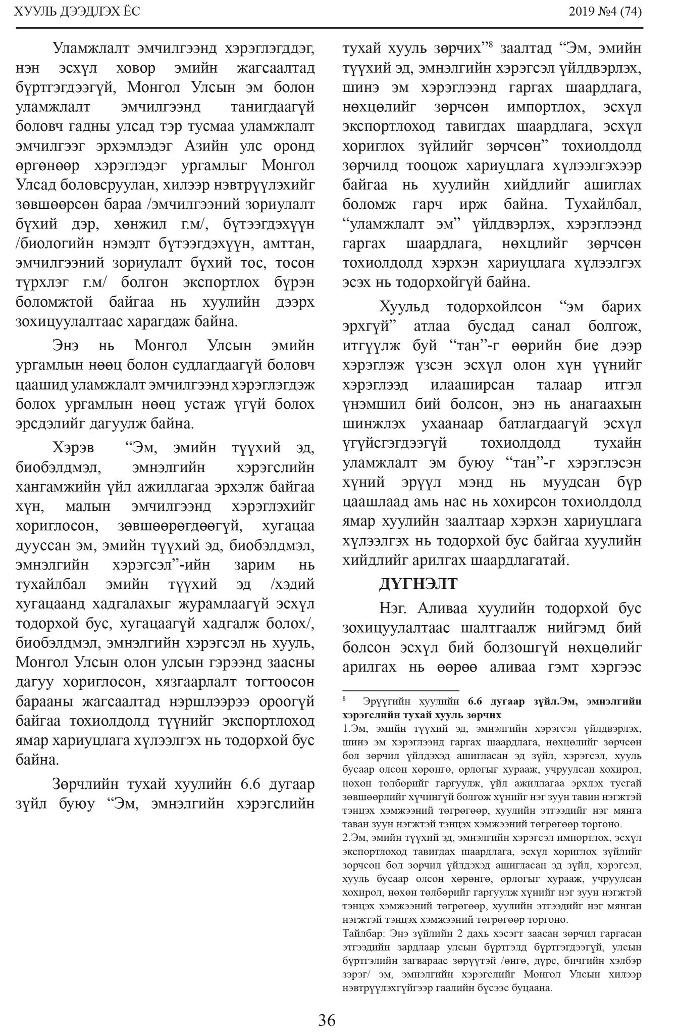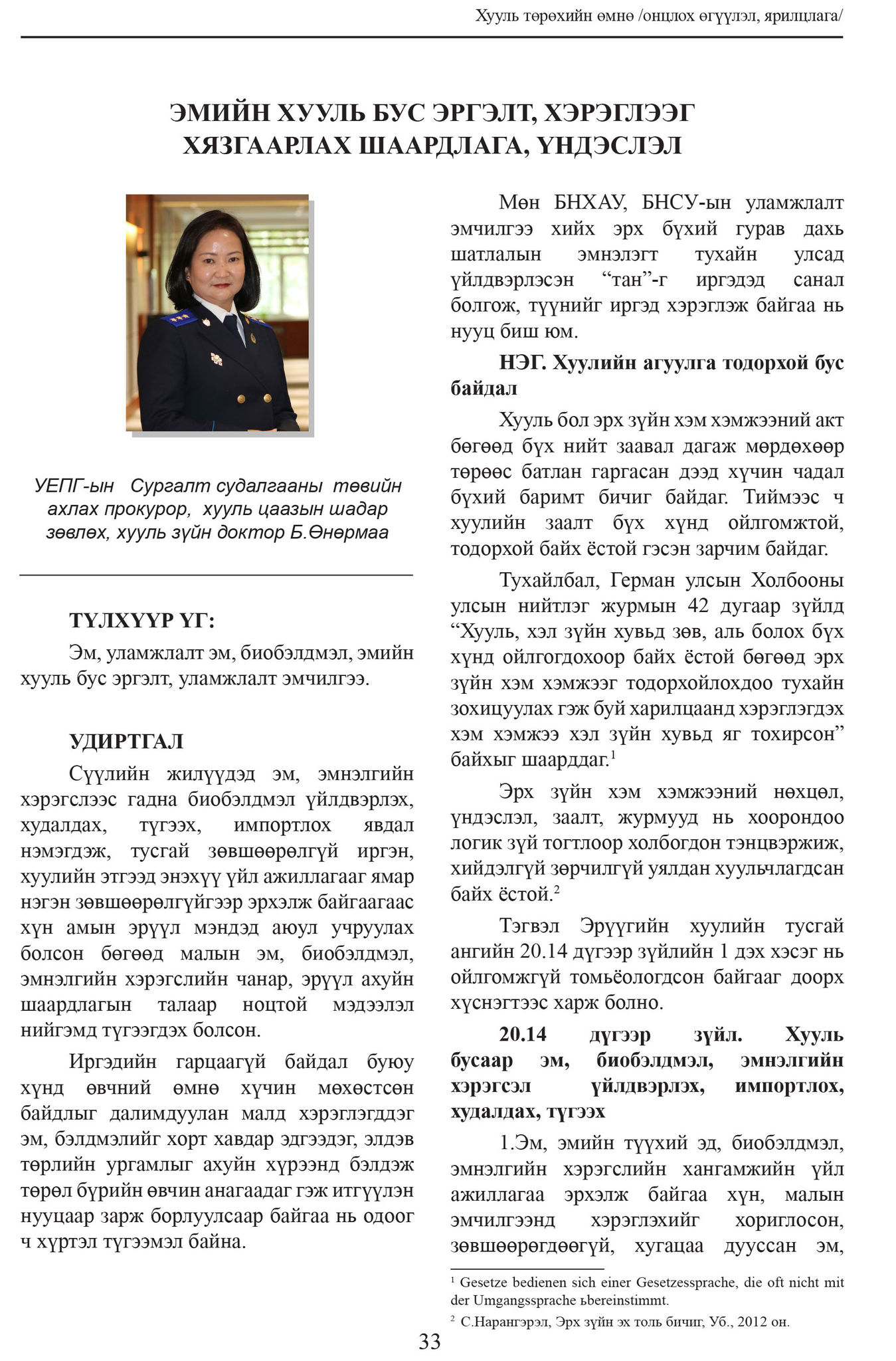 Монголын Хуульчдын холбооноос эрхлэн гаргадаг "Хууль дээдлэх ёс" сэтгүүлд нийтлэгдсэн Улсын Ерөнхий прокурорын газрын Сургалтын төвийн прокурор, хууль зүйн доктор Б.Өнөрмаагийн "Эмийн хууль бус эргэлт, хэрэглээг хялгаарлах шаардлага, үндэслэл" судалгааг хүргэж байна.