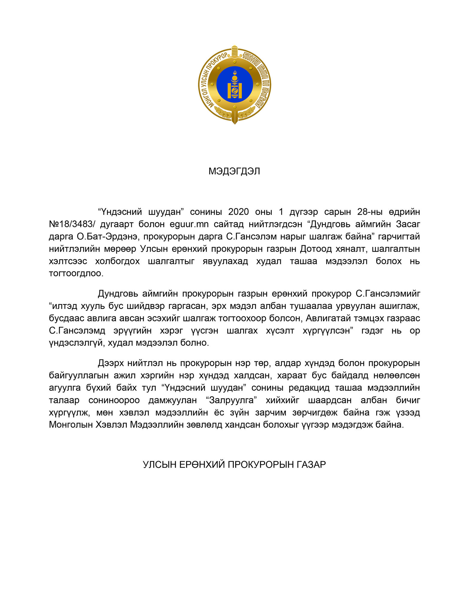 Улсын Ерөнхий Прокурорын Газрын Олон нийттэй харилцах алба