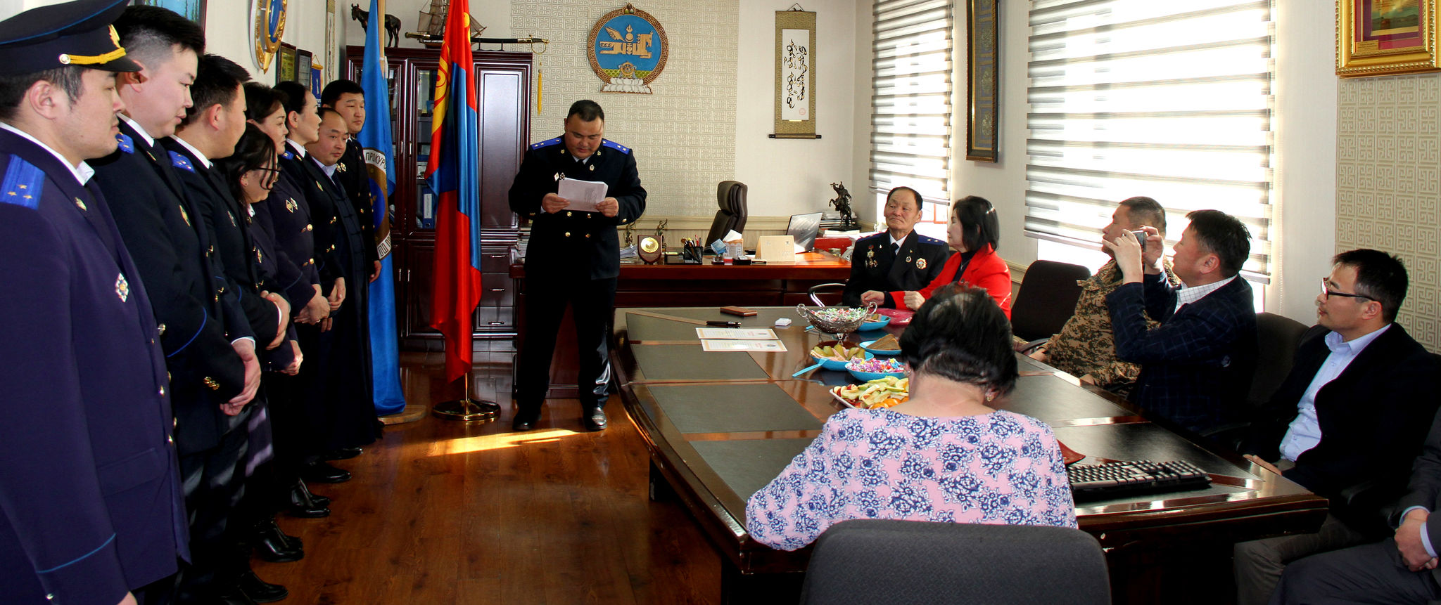 Шинээр томилогдсон прокуроруудад ахмад прокурор Б.Түмэндэмбэрэл, Д.Оюунбилэг нар баяр хүргэж, албаны үүргээ үнэнч, шударгаар биелүүлэн, прокурорын ёс зүй, нэр хүндийг өндөрт өргөж явахыг захиж, ажлын өндөр амжилт хүсэв.