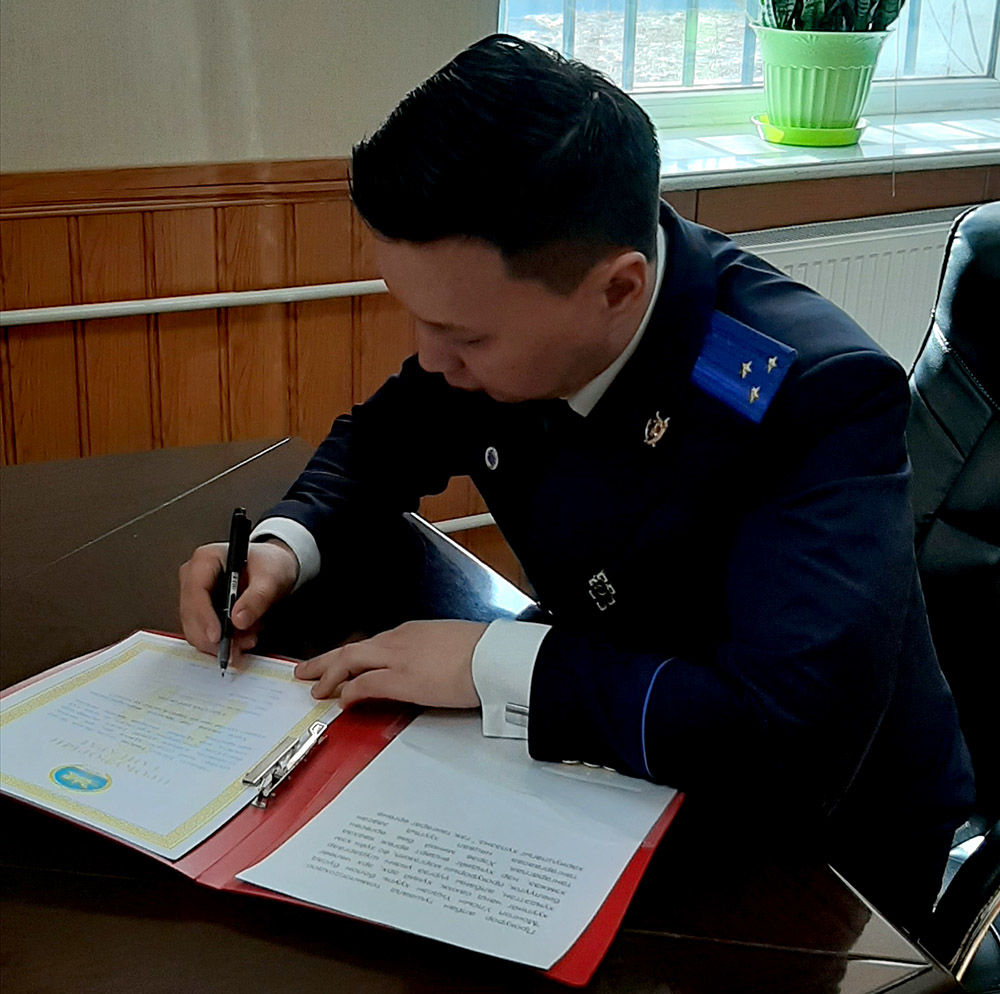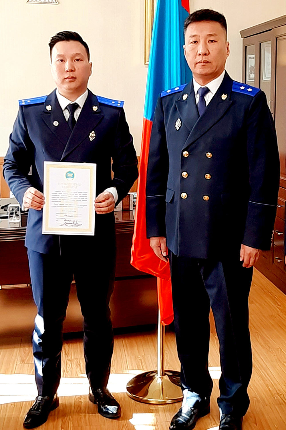 Шинээр томилогдсон прокурор Ц.Цэрэнбалжирт хамт олны зүгээс баяр хүргэн, өргөсөн тангарагтаа үнэнч шударгаар ажиллан, албан үүргээ нэр төртэй биелүүлэхийг захиж, ажлын өндөр амжилтыг хүсэн ерөөж, дурсгалын зүйл гардууллаа.