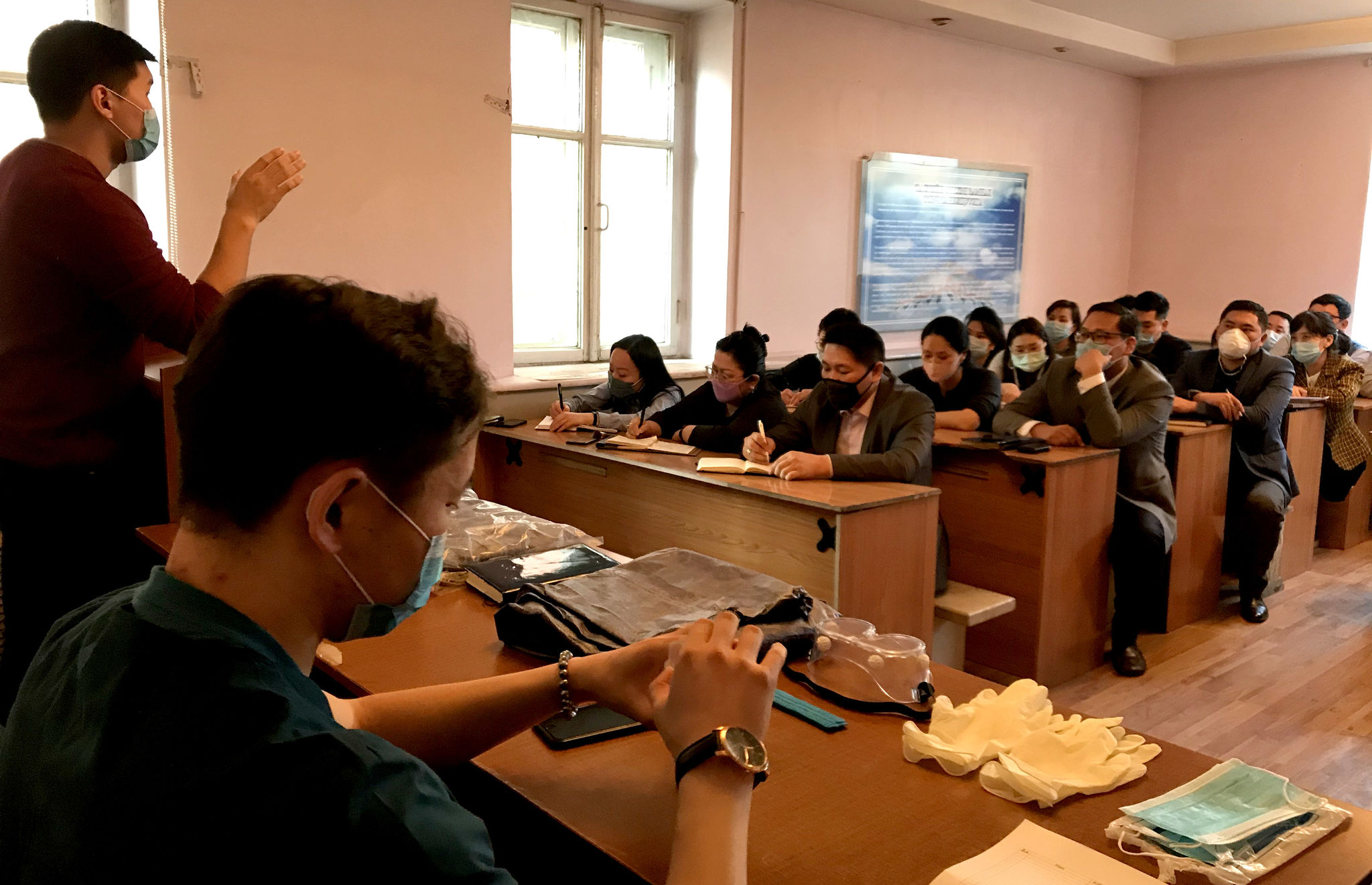 Гоц халдварт Корона вирусын голомтод ажиллах нөхцөлд хамгаалах хувцас, хэрэглэлийг хэрхэн хэрэглэх талаар болон энэ төрлийн өвчнөөс хэрхэн урьдчилан сэргийлэх чиглэлээр онол, практик хосолсон сургалт хийжээ.