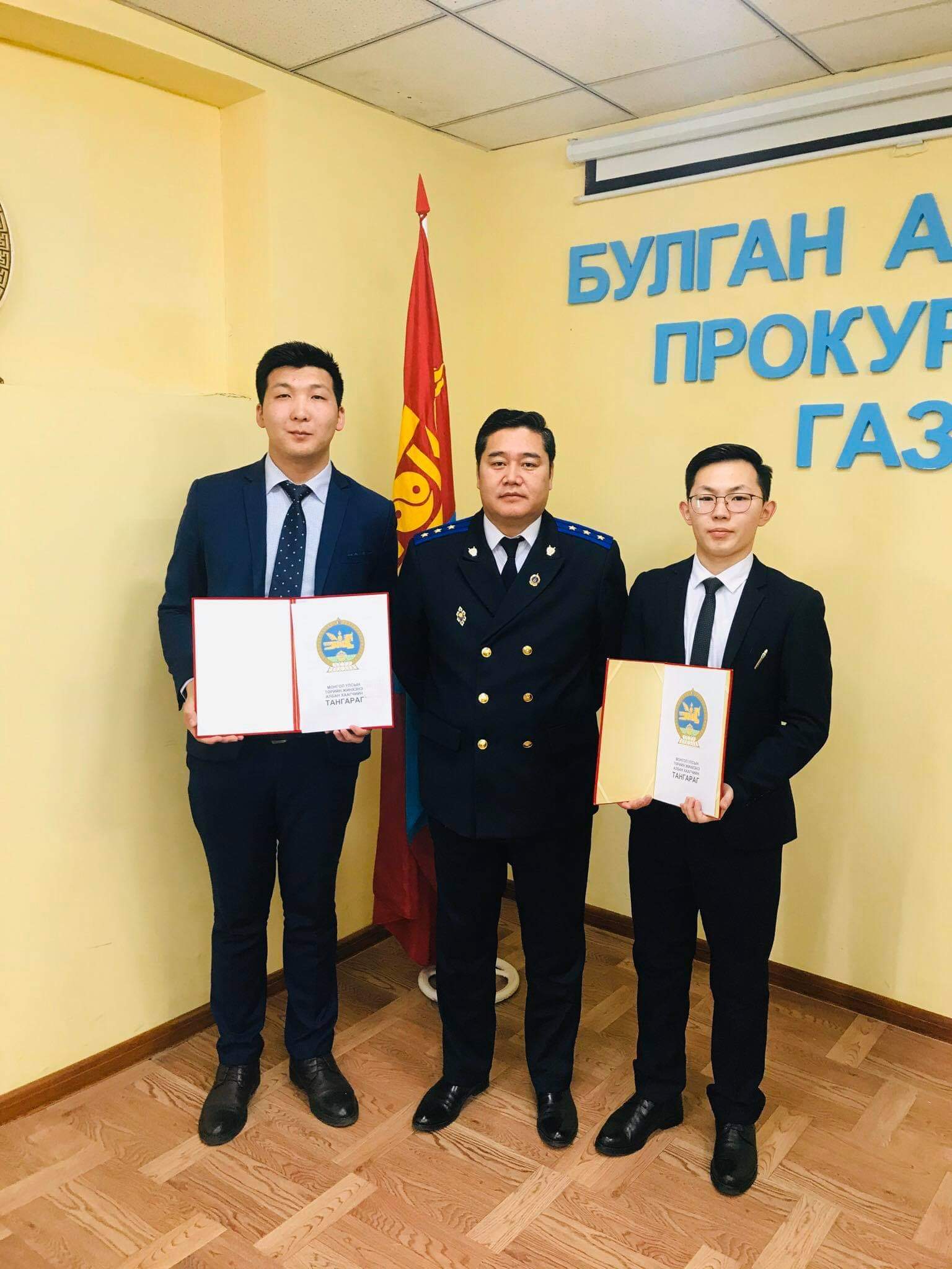 Булган аймгийн прокурорын газрын прокурорын чиг үүргийг хэрэгжүүлэхэд туслах ажилтан З.Хүслэн, аймгийн ерөнхий прокурорын туслах ажилтан Д.Энхбаяр нарын Төрийн захиргааны албан хаагчийн тангараг өргөх ёслолын үйл ажиллагаа 2020 оны 2 дугаар сарын 13-ны өдөр тус газарт боллоо.