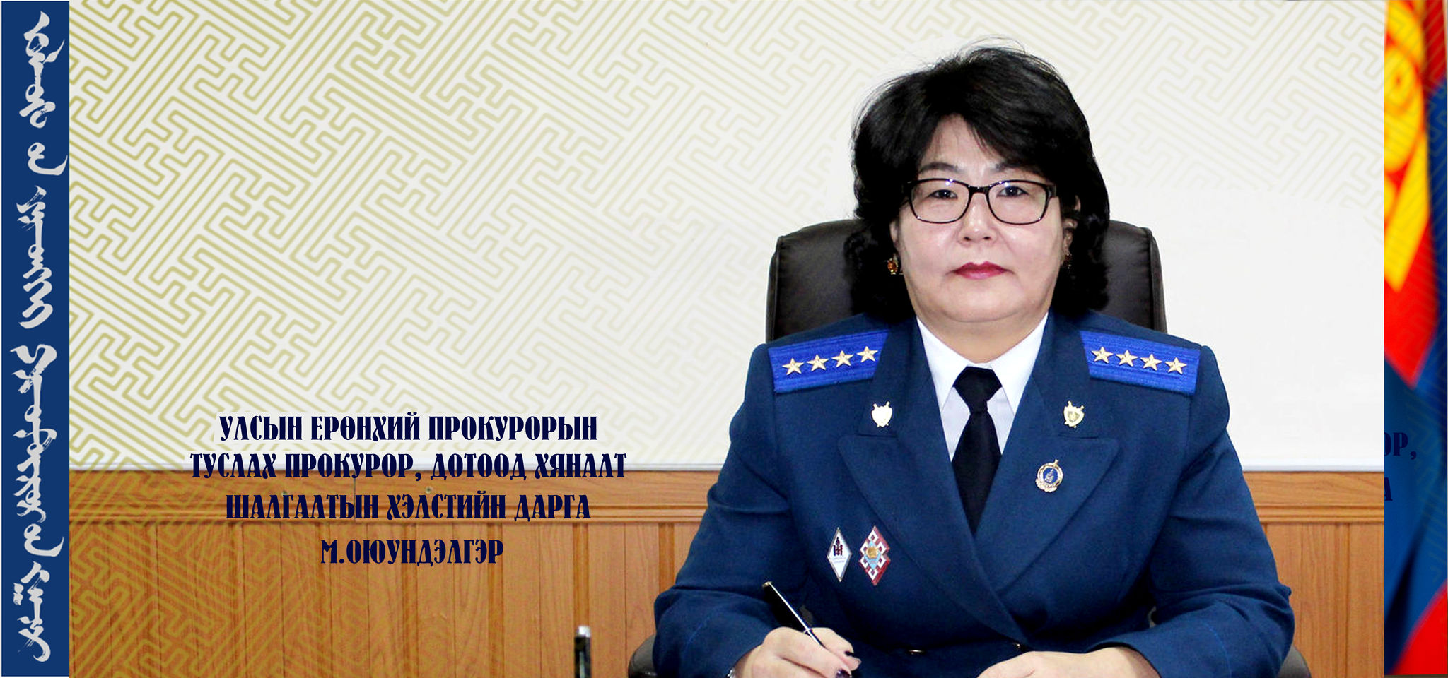 Монгол Улсад Прокурорын байгууллага үүсч хөгжсөн 90 жилийн түүхэнд төрийн хууль ёсыг чандлан сахиж прокурорын албаны нэр хүндийг өндөрт өргөж, үнэтэй хувь нэмрээ оруулсан хүчирхэг эмэгтэйчүүд олон бий. Хүнд хэцүү амаргүй он жилүүдэд тангараг өргөсөн залуустайгаа мөр зэрэгцэн ажлын хүндийг үүрч явсан эмэгтэйчүүд прокурорын байгууллагын нэгэн бахархал юм. Өдгөө прокурорын байгууллагад тангараг өргөж, хуулийг нэг мөр хэрэгжүүлэн ажиллаж байгаа нийт прокурорын 50 гаруй хувь нь буюу 282 эмэгтэй прокурор ажиллаж байна.