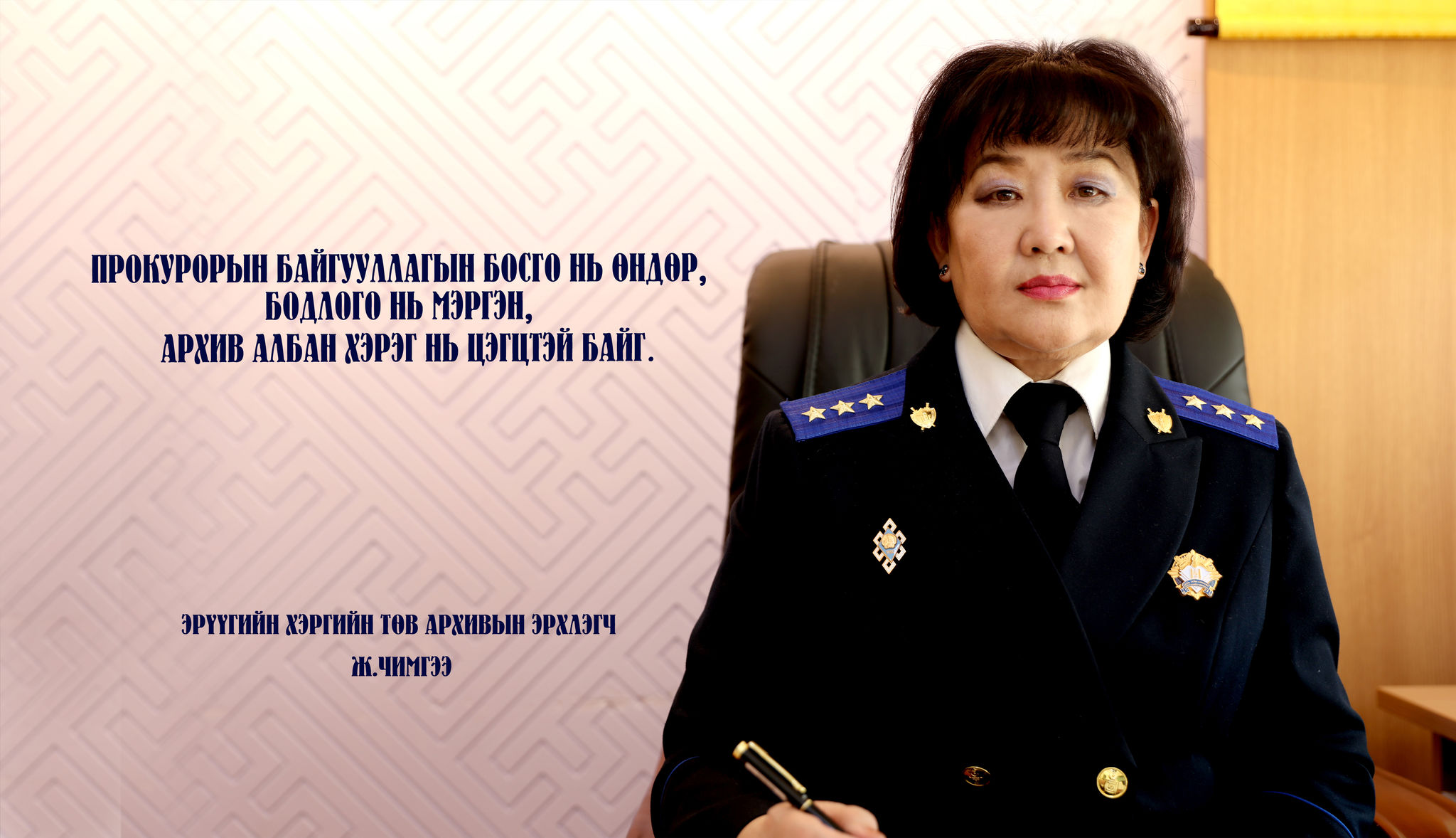 Мөн Эрүүгийн хэргийн төв архив хэмээх том нэгжийн удирдлагаар 2010 оноос хойш эмэгтэй прокурорууд тасралтгүй ажиллаж байна. 2010-2014 онд Ж.Ичинхорлоо, 2015-2017 онд Ц.Сэлэнгэ, 2018 оноос хойш Ж.Чимгээ ажиллаж байгаа нь архивын үйл ажиллагаанд эмэгтэй хүний нарийн ухаан аргагүй тусгагдах ёстой гэдгийг харуулж байна.