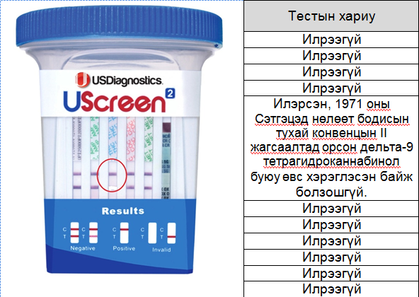 Шалгалтыг дүүргийн Цагдаагийн газар болон Эрүүгийн цагдаагийн газрын Хар тамхитай тэмцэх газартай хамтран зохион байгуулан бөгөөд Дархан-Уул аймгийн шүүхээс хорих ял оногдуулахгүйгээр 1 жилийн хугацаагаар тэнсэгдсэн М гэгчээс мансууруулах эм, сэтгэцэд нөлөөт бодис хэрэглэсэн байж болзошгүй сэжиг илэрч, харьяа Цагдаагийн байгууллагад шалгуулахаар шилжүүлсэн байна.